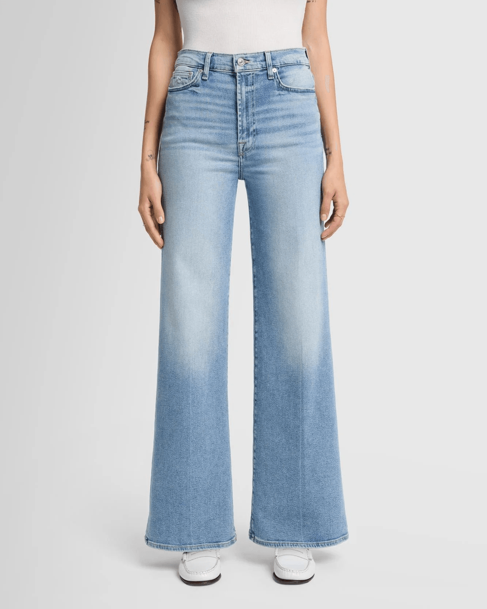 Elevate your denim collection with the 7 For All Mankind Luxe Vintage Ultra High Rise Jo in Must Must. This pair features an ultra high rise and a classic wide leg, combining comfort and style effortlessly. Experience the luxurious feel of vintage luxe denim, designed for that perfectly broken-in sensation.