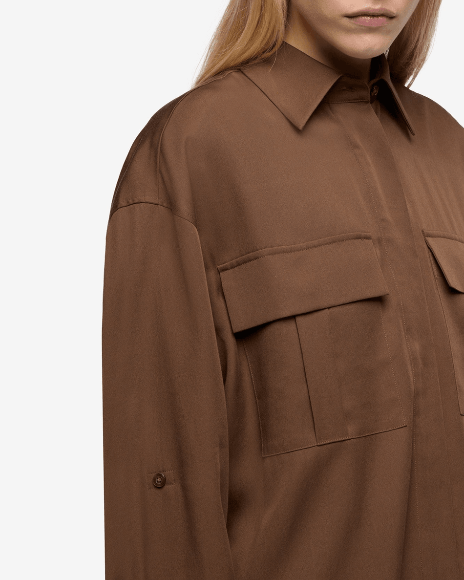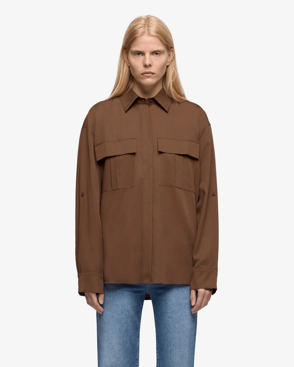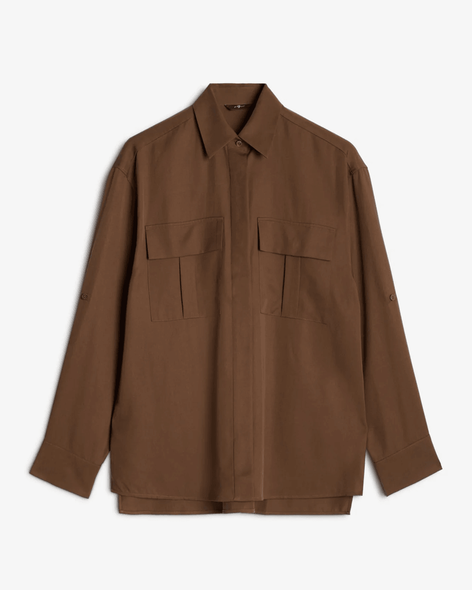 Discover the 7 For All Mankind Lyocell Utility Shirt in Cocoa Cocoa