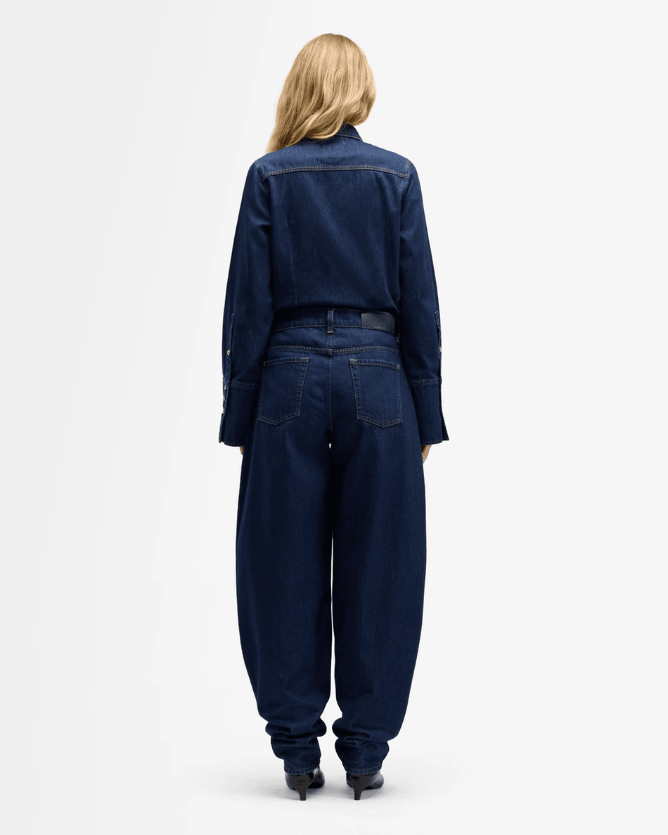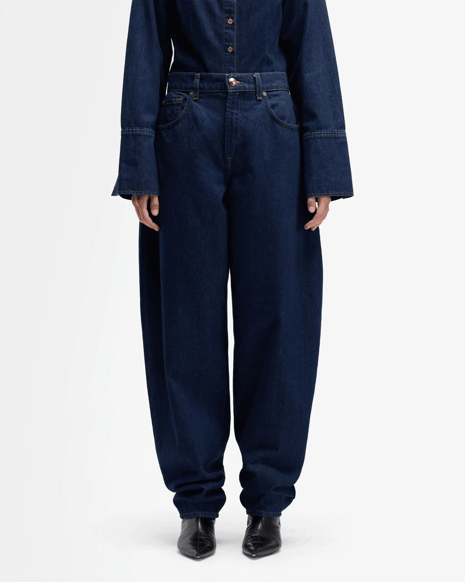 Experience effortless style and comfort with the 7 For All Mankind MANKIND Bonnie Stacked in Indigo Soul. These jeans are designed for those who appreciate a perfect blend of fashion and function. With a unique curved barrel leg and roomy thighs, these mid-rise jeans taper elegantly at the ankle, making them a versatile addition to any wardrobe.
