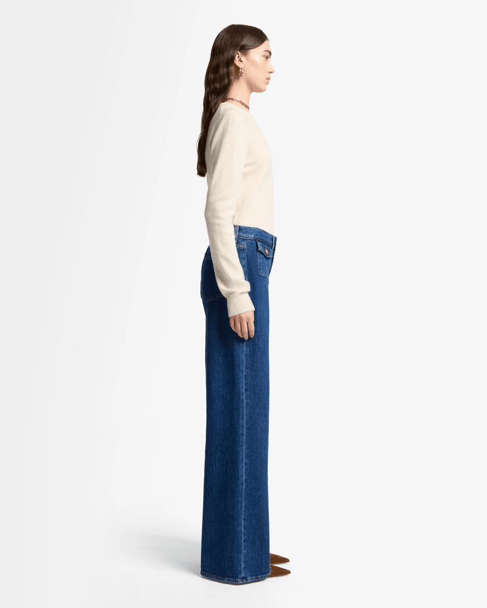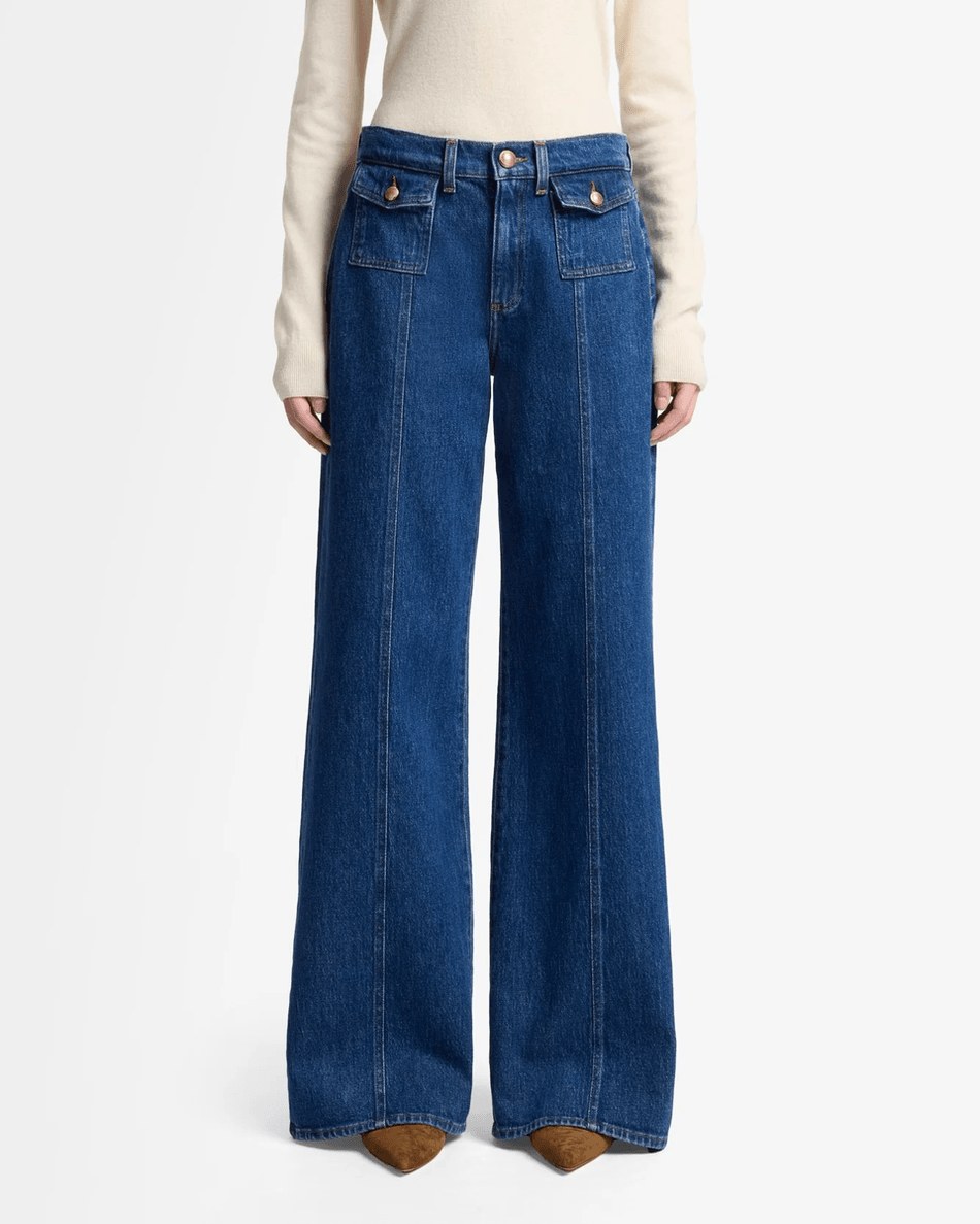 - Stylish Details: Mid wash with statement flap pockets and gold hardware.