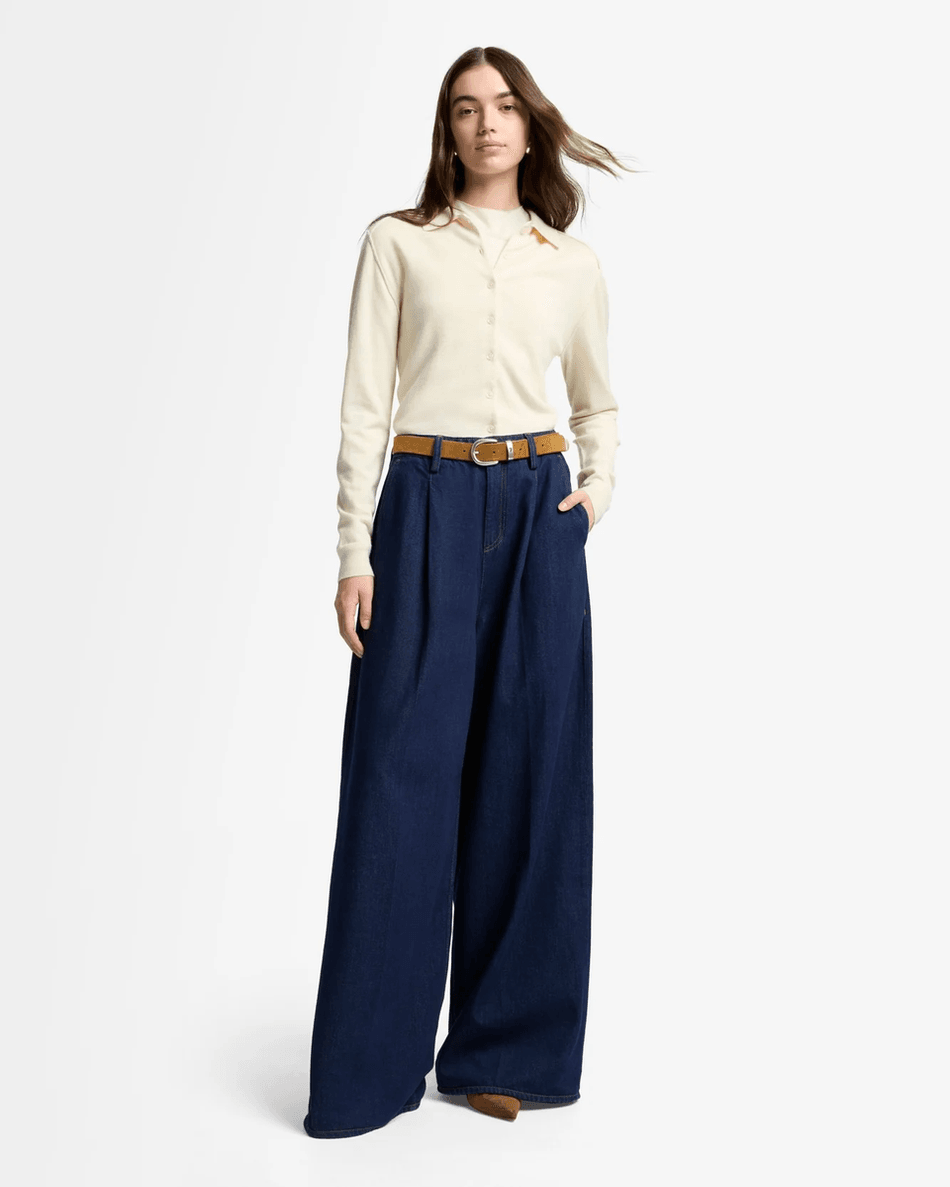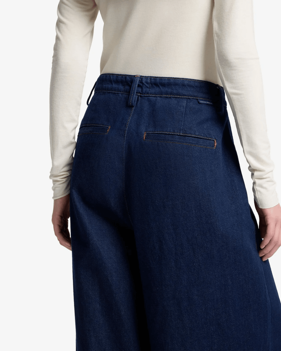 The 7 For All Mankind MANKIND Pleated Wide Leg Trouser in Franklin is crafted from high-quality denim that delivers a structured feel while ensuring maximum comfort. The dark wash finish adds versatility, allowing you to effortlessly transition from day to night. With a zip fly and button closure, this trouser ensures a secure fit, while the welted back pocket adds a stylish touch. Perfect for both casual outings and sophisticated events, these trousers can be paired with a variety of tops for a chic ensemble.