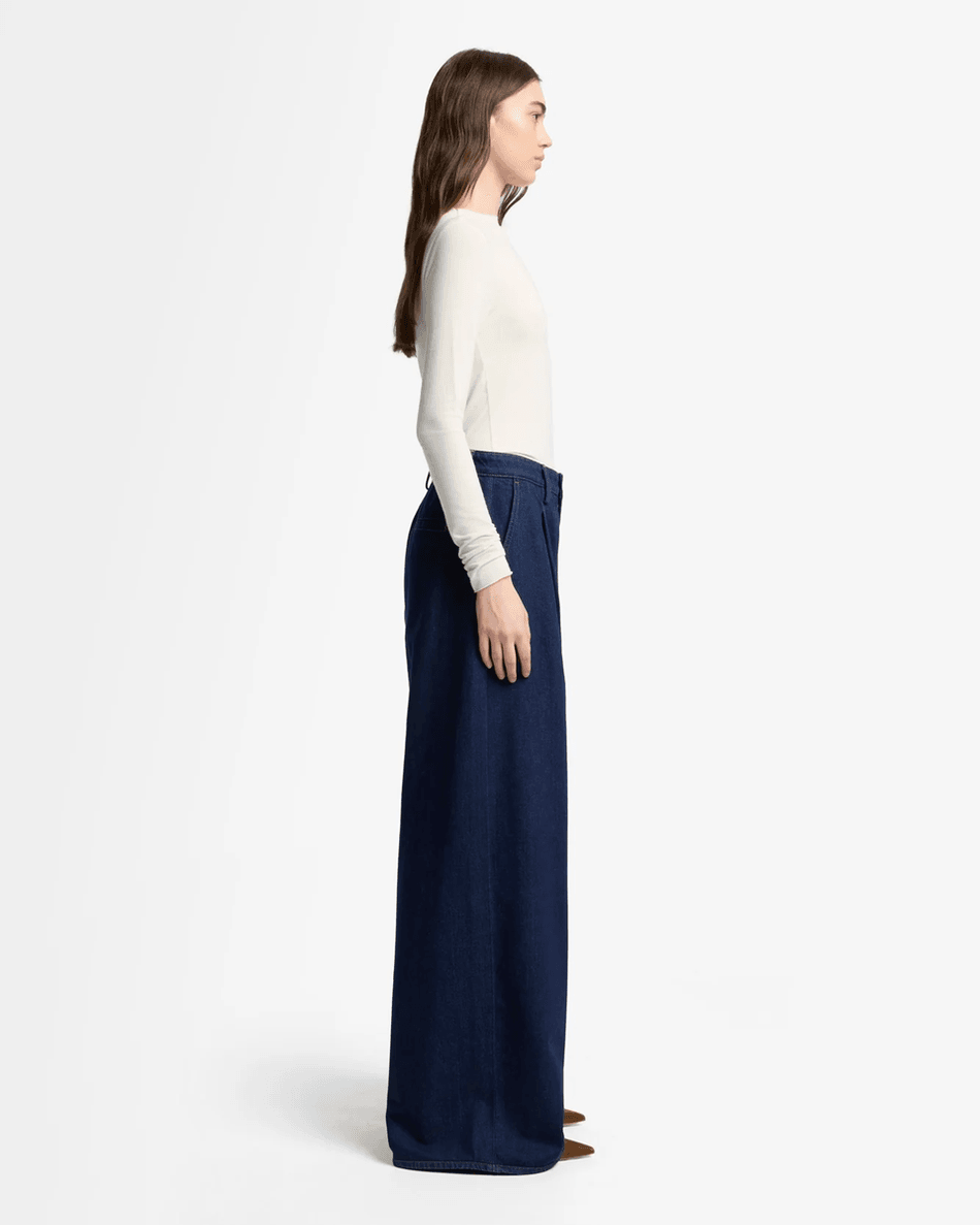 Discover the 7 For All Mankind MANKIND Pleated Wide Leg Trouser in Franklin