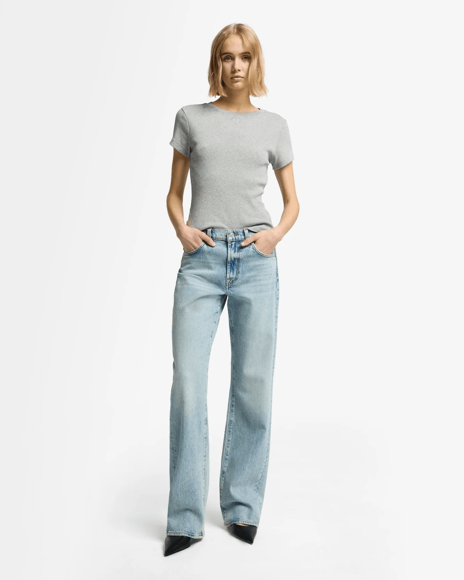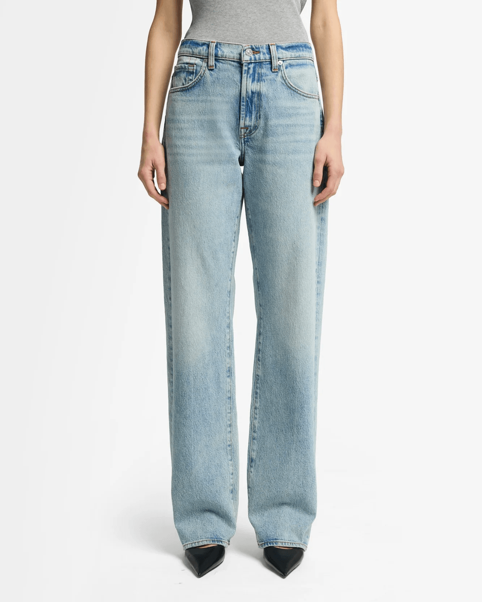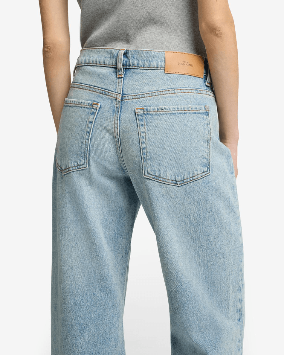 The 7 For All Mankind MANKIND Tess Trouser in Ode To is more than just a pair of jeans; it’s a fashion statement. Its classic and structured design makes it ideal for both casual outings and dressier occasions. The light wash denim features a zip fly with button closure, ensuring a secure fit while adding a touch of sophistication.
