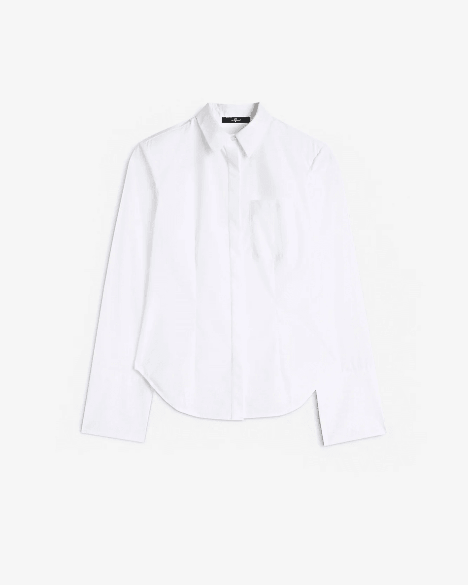 Don't miss out on the opportunity to own the 7 For All Mankind Poplin Fitted Shirt in White. Shop now and redefine your style with this essential piece!