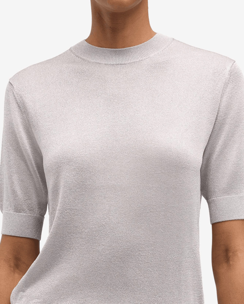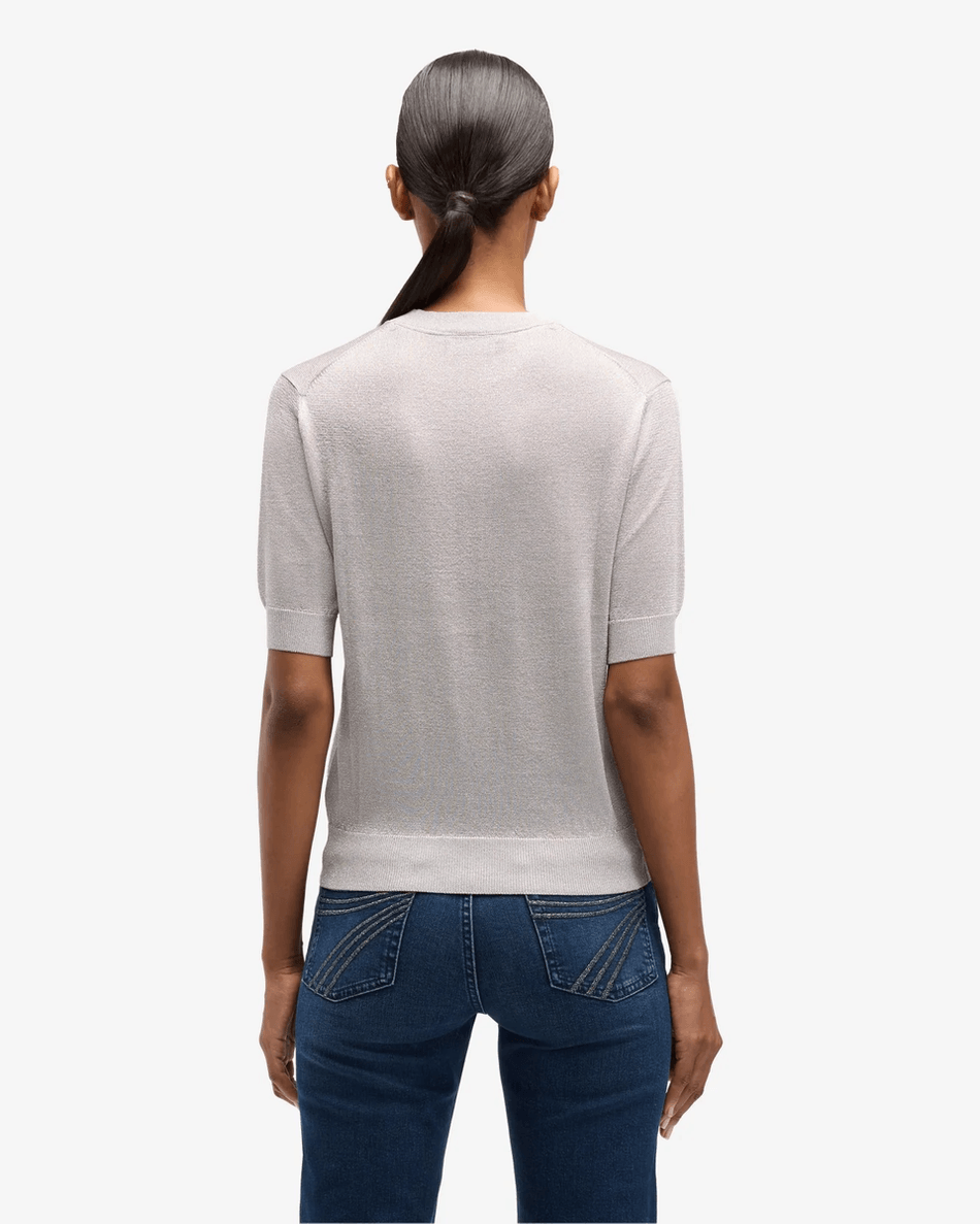 7 For All Mankind Short Sleeve Sweater in Silver Lurex Silver Lurex