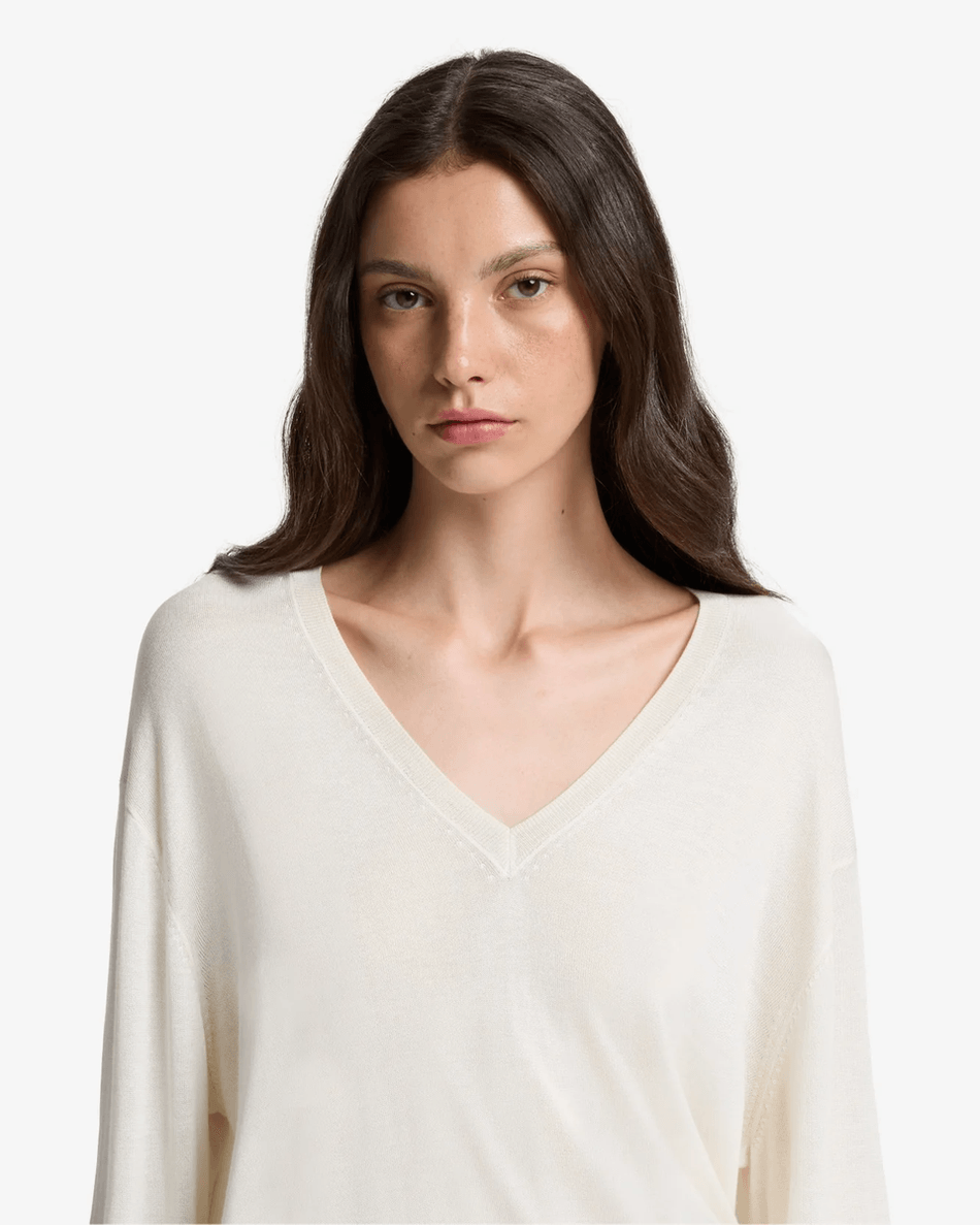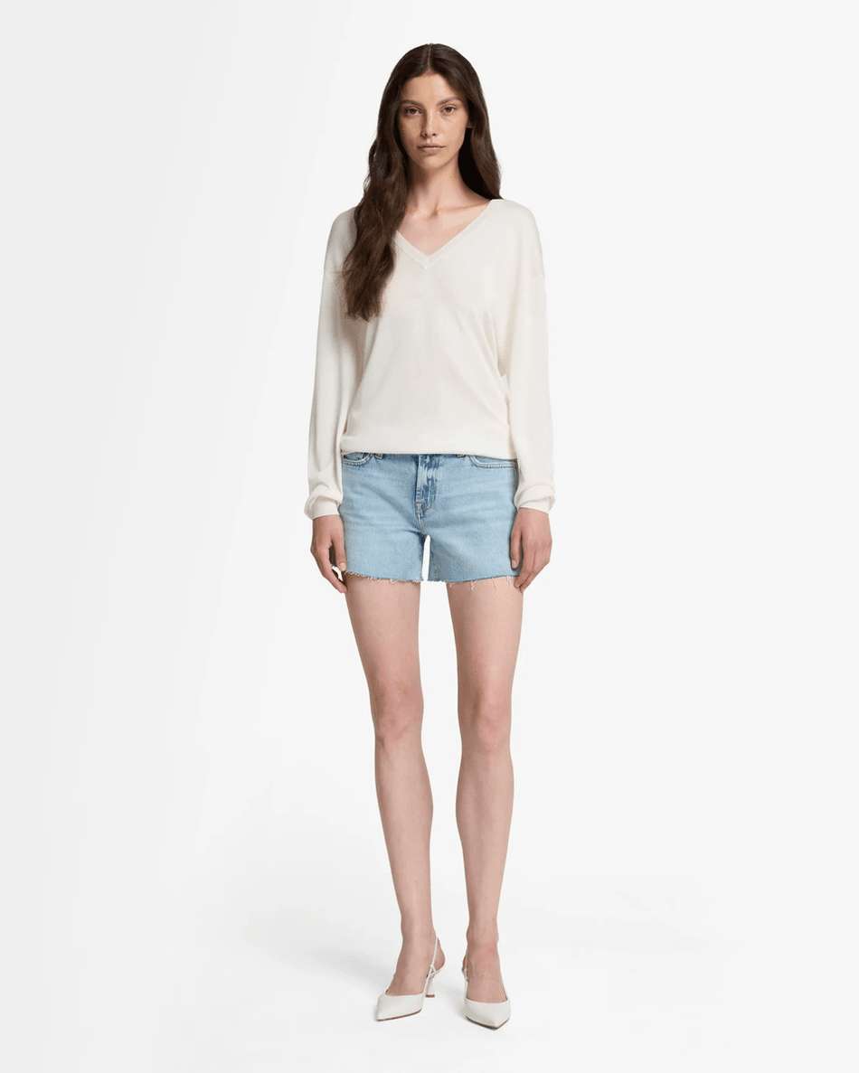Discover the Elegance of the 7 For All Mankind Silk Blend V-Neck Pullover in Ivory