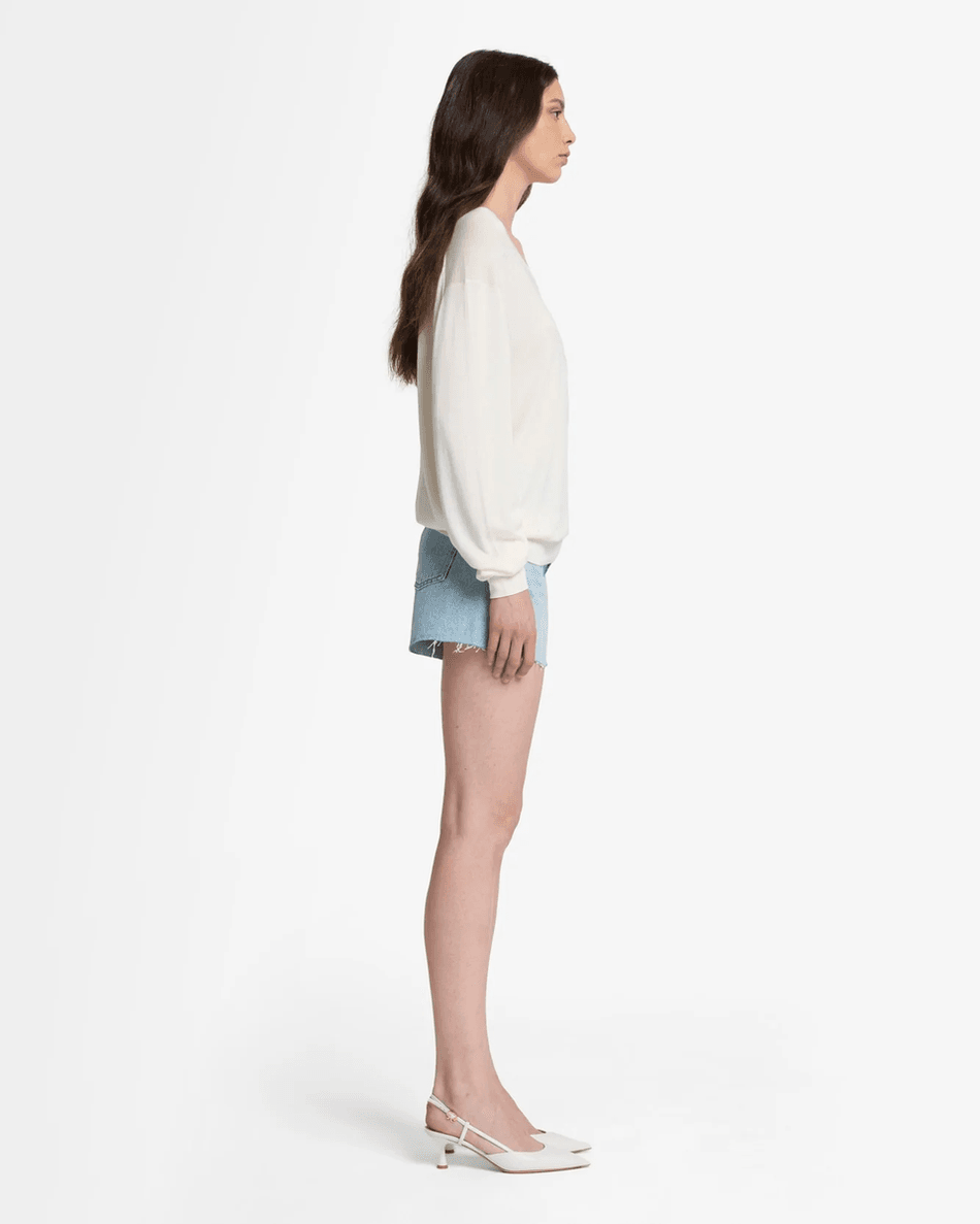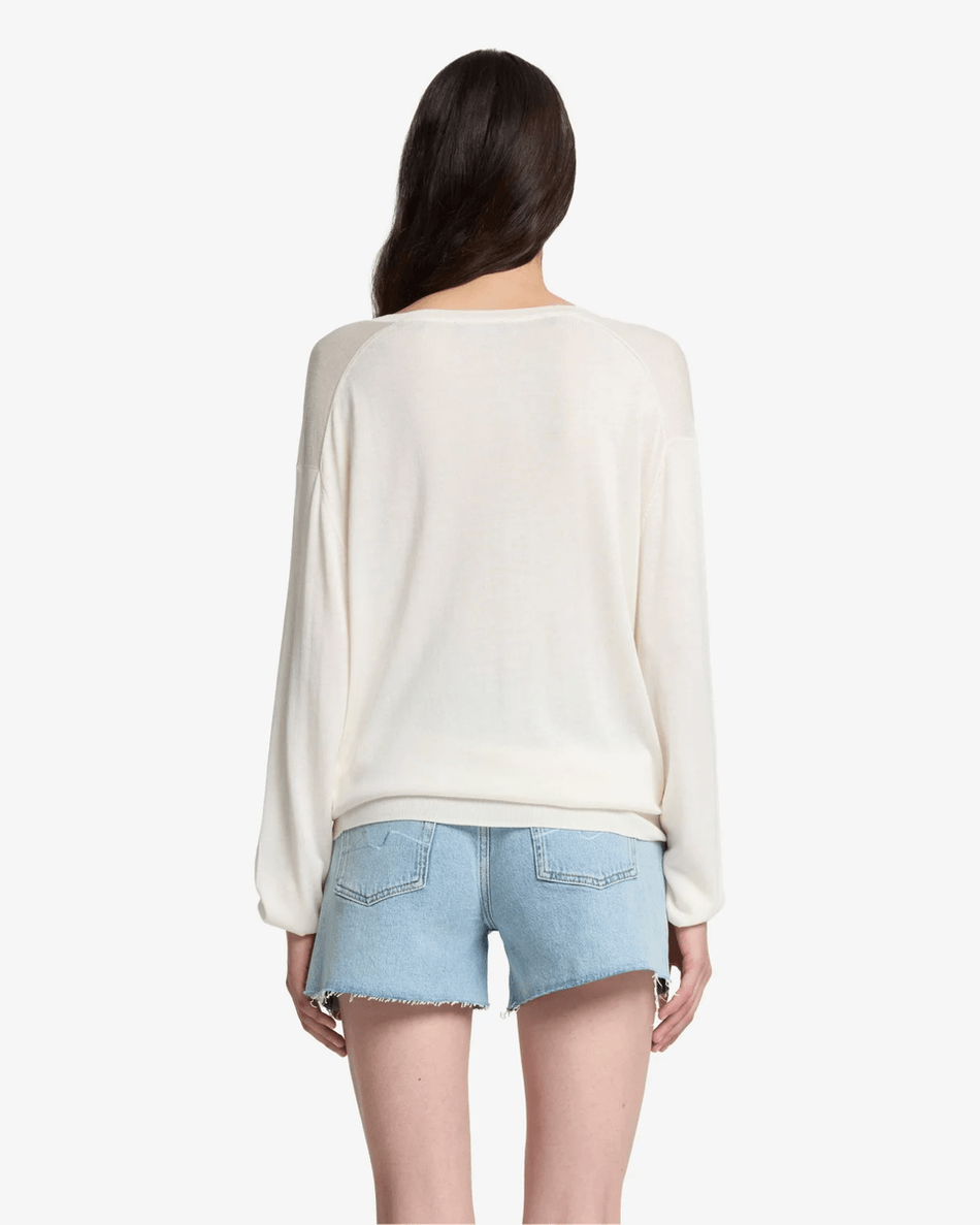 7 For All Mankind Silk Blend V-Neck Pullover in Ivory Ivory