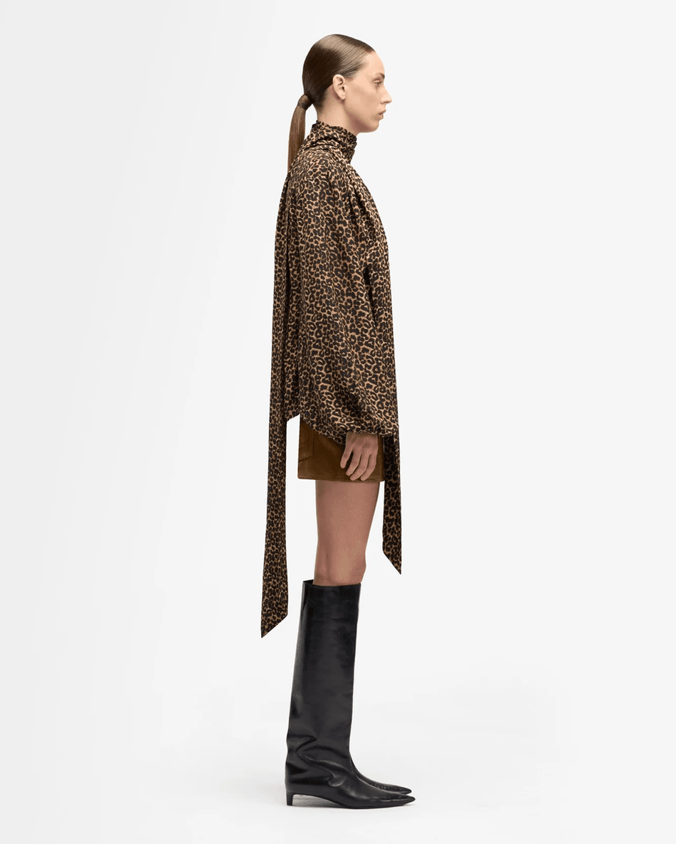 Elevate Your Wardrobe with the 7 For All Mankind Silk Bow Shirt in Leo Leo