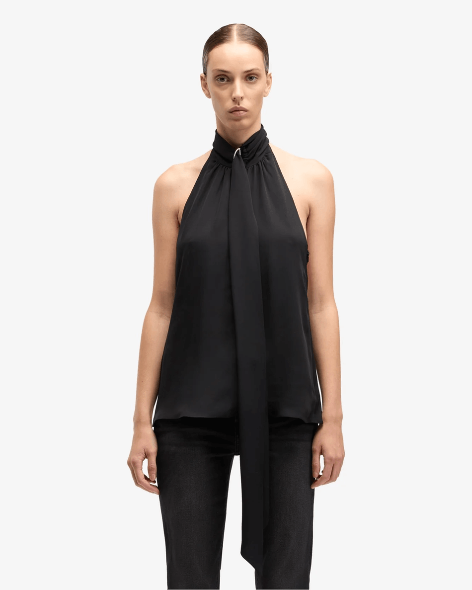 Elevate Your Wardrobe with the 7 For All Mankind Silk Halter Top in Black