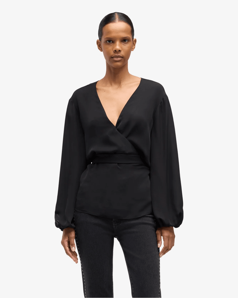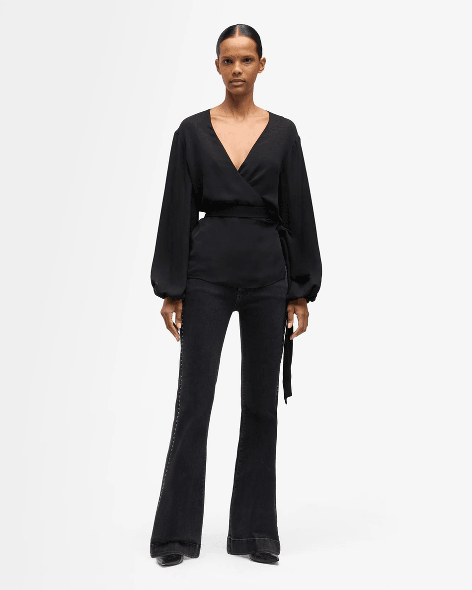 Discover the Elegance of the 7 For All Mankind Silk Wrap Blouse in Black