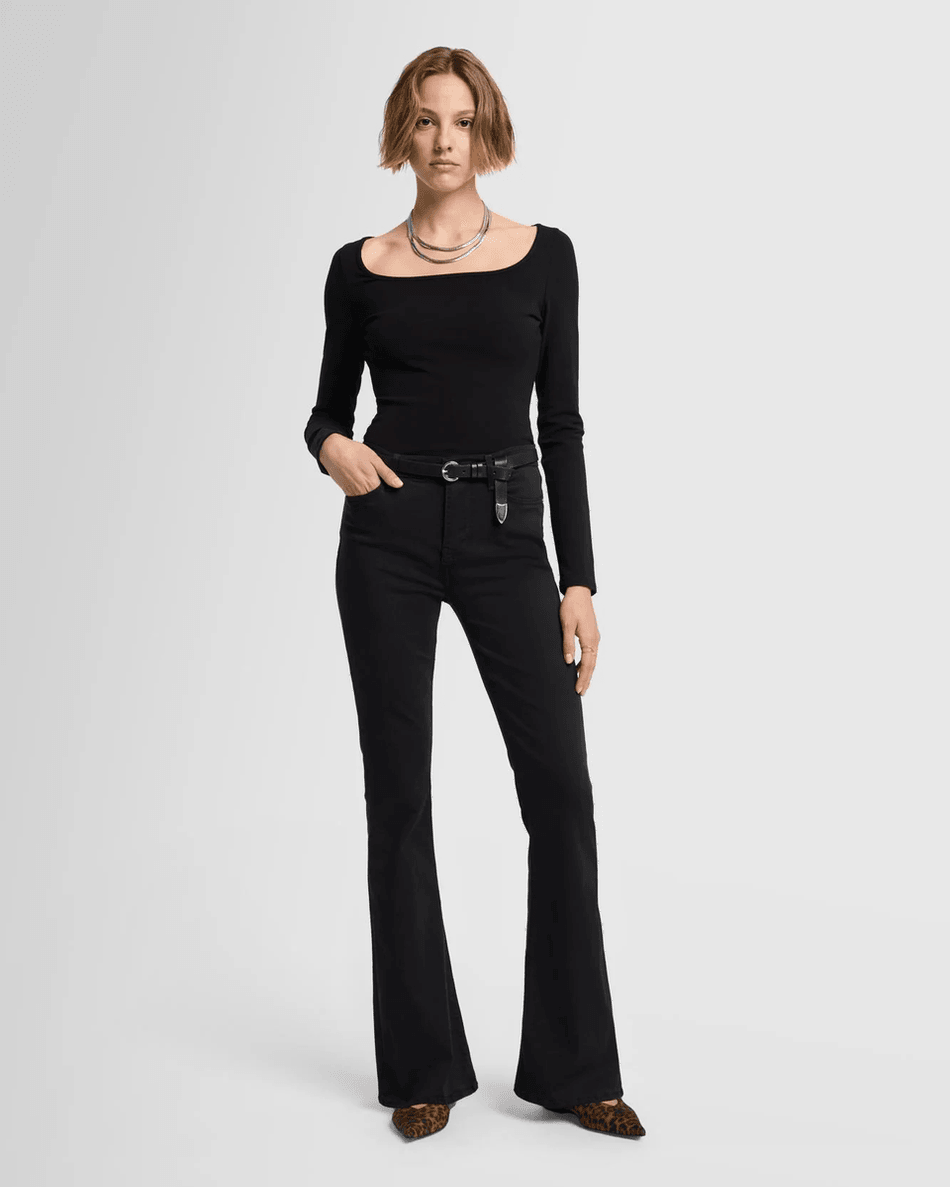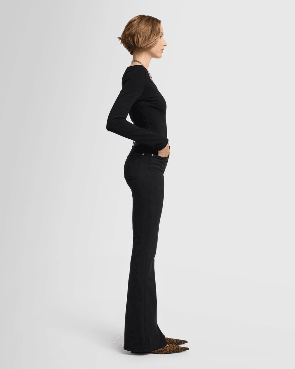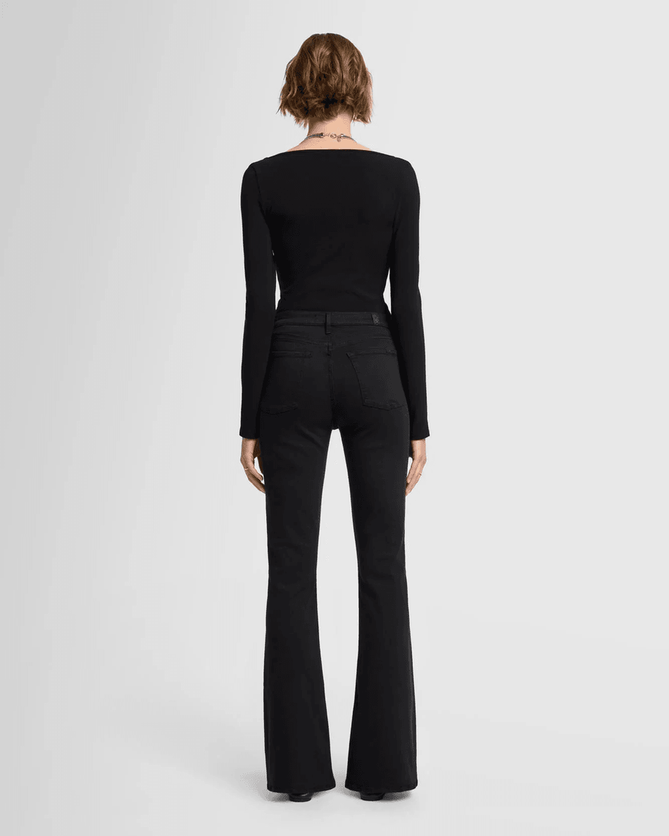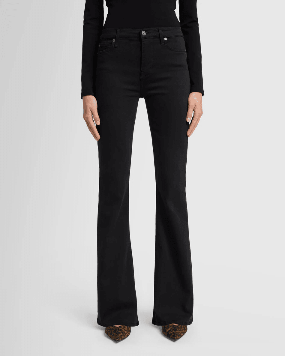 The 7 For All Mankind Slim Illusion High Waist Ali in Black Black fits like a dream, hugging your hips and thighs before elegantly flaring out at the knees. This bold design not only enhances your natural curves but also creates a leg-lengthening effect that will turn heads. Crafted from smooth, figure-flattering denim, these jeans offer superior stretch and comfort, ensuring you feel great from morning to night.