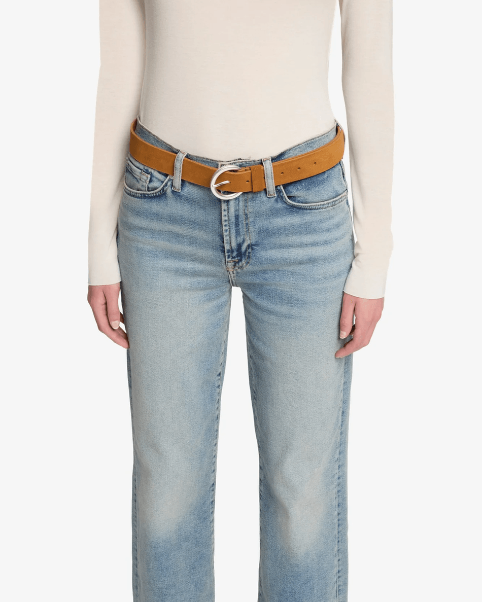Discover the 7 For All Mankind Timeless Italian Suede Belt in Tobacco