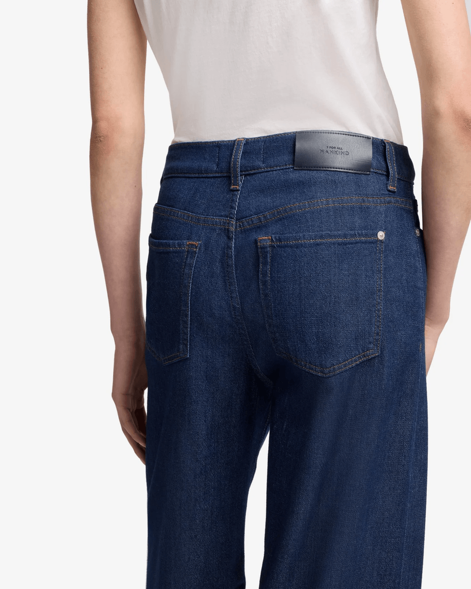 The 7 For All Mankind Weightless Lotta in Halona features a full-length silhouette that makes a bold statement. Its dark wash enhances versatility, allowing you to effortlessly pair it with various tops and footwear. The zip fly with button closure offers ease of wear, while the clean back pocket keeps the design sleek and modern.