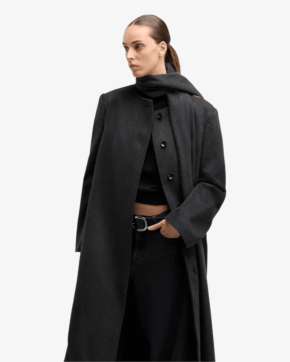 Discover the 7 For All Mankind Wool Cashmere Scarf Coat in Dark Grey