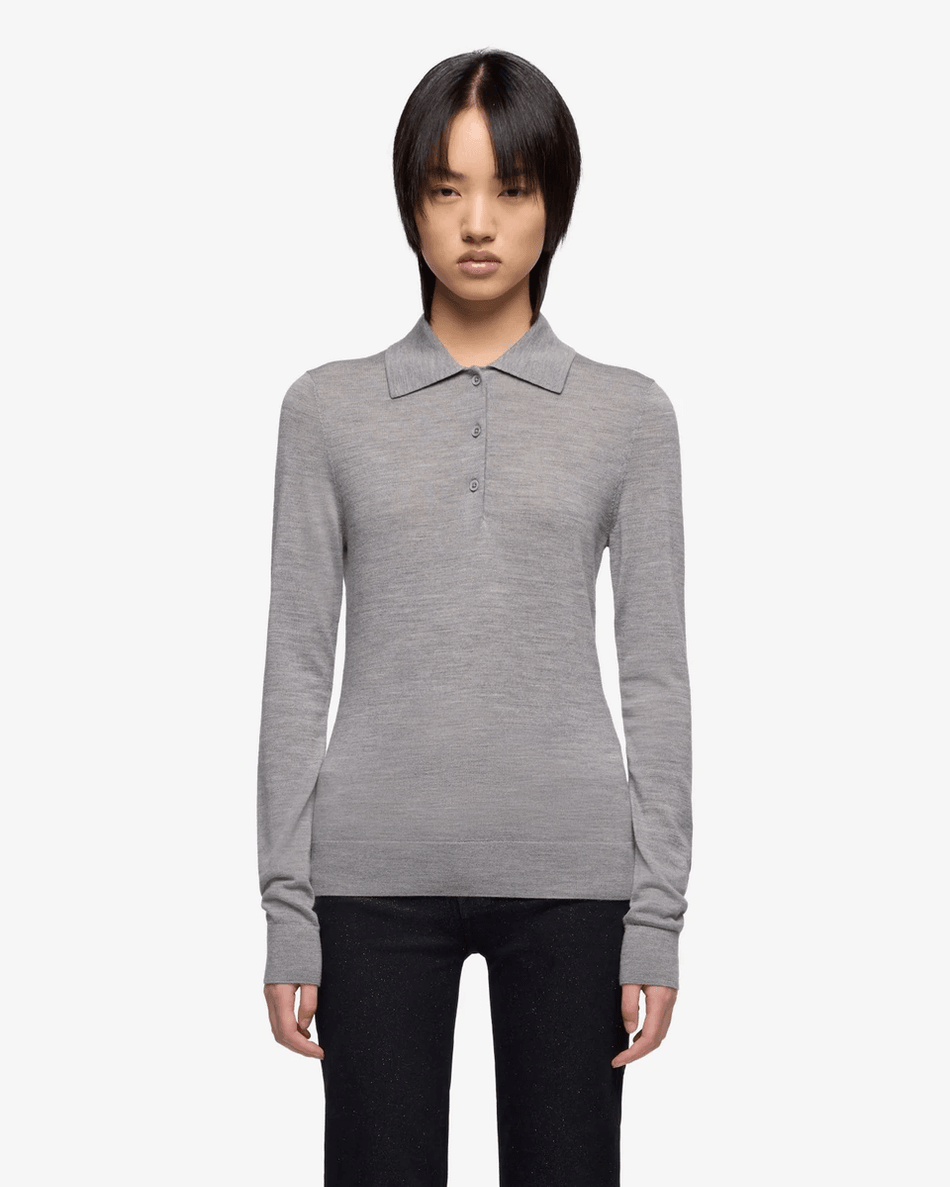 7 For All Mankind Wool Long Sleeve Polo Sweater in Slate Slate