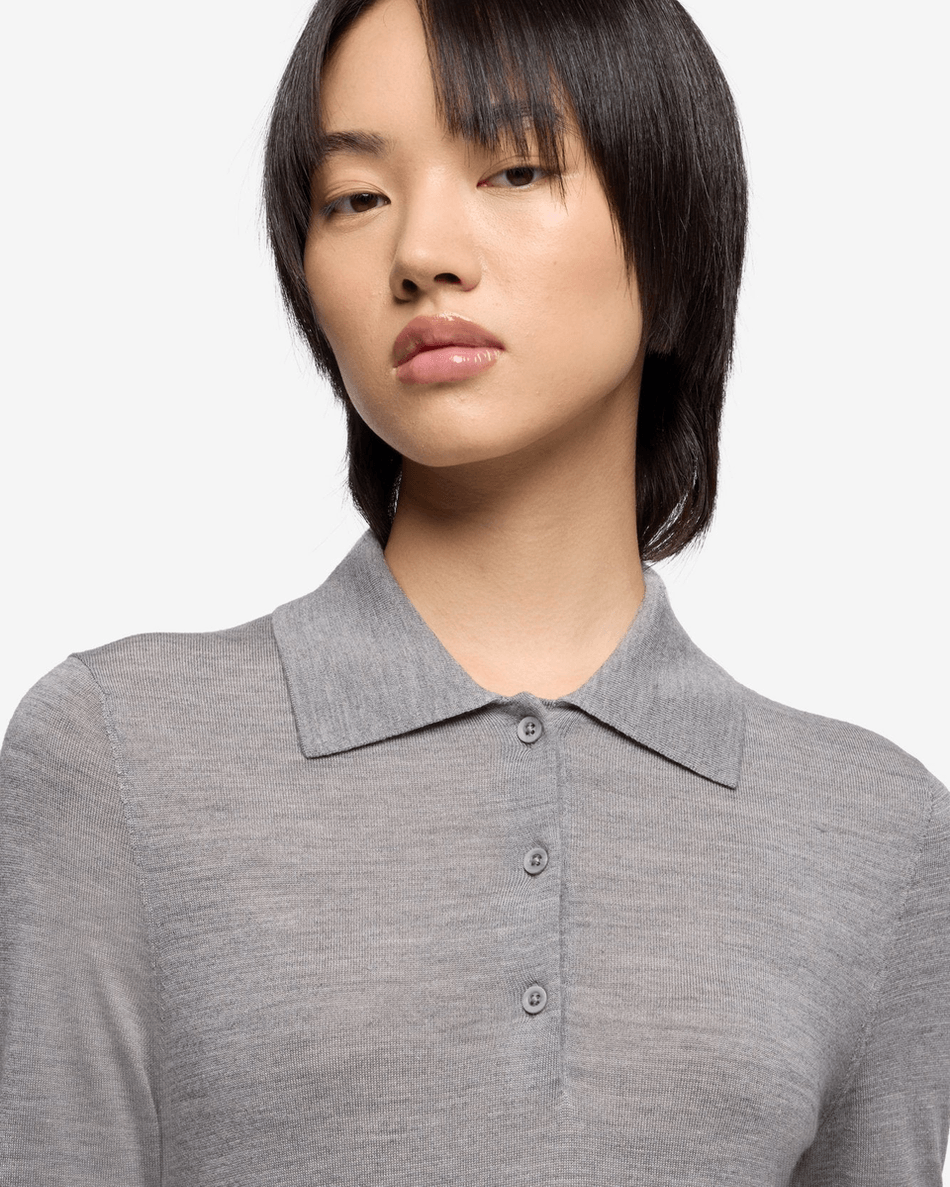 Elevate Your Wardrobe with the 7 For All Mankind Wool Long Sleeve Polo Sweater in Slate Slate