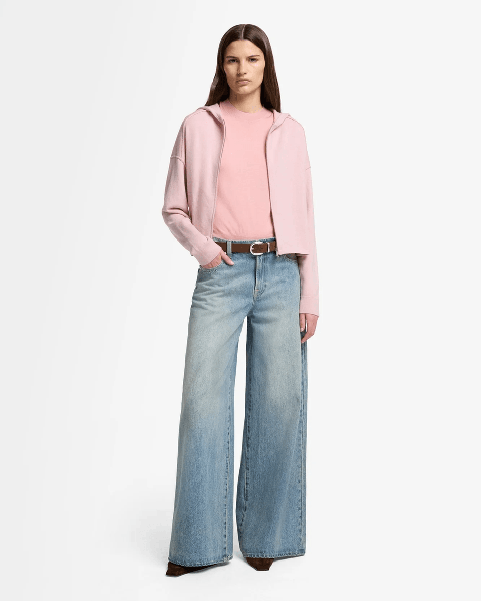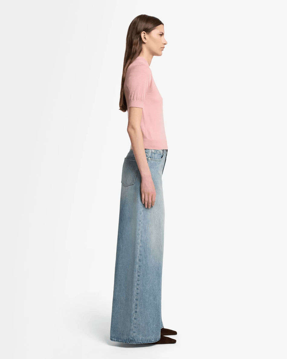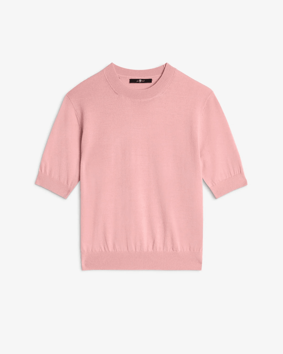 Discover the 7 For All Mankind Wool Short Sleeve Sweater in Pink