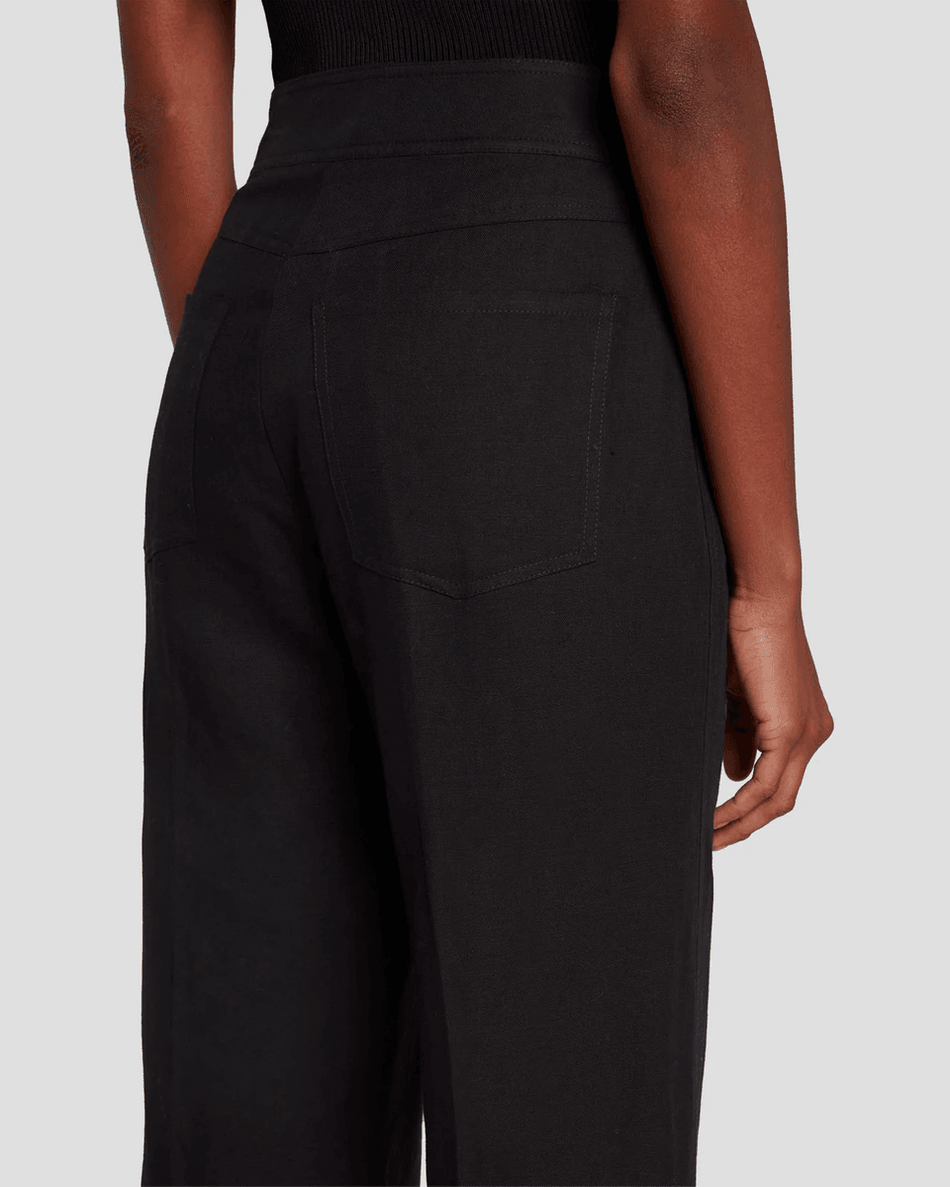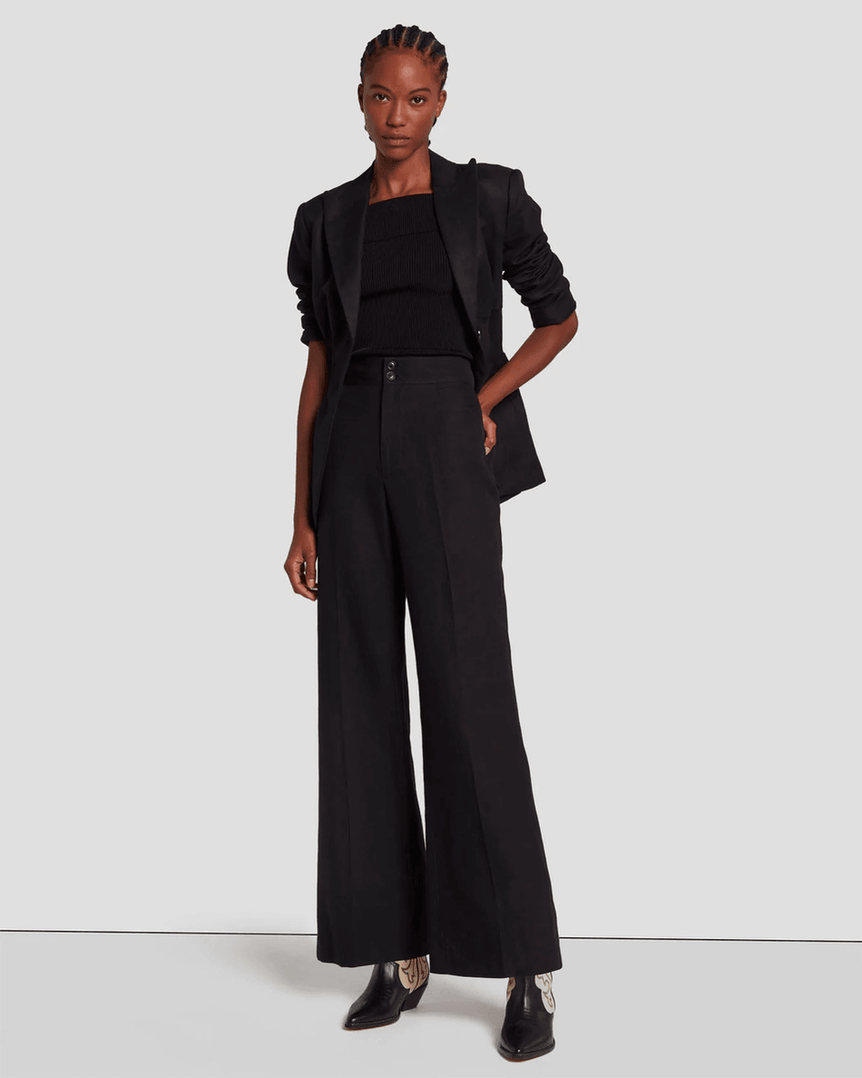 Elevate your wardrobe with the 7 For All Mankind Modern Dojo Linen Trouser in Black. This contemporary take on a classic silhouette combines timeless style with modern comfort, perfect for fashion-forward women.