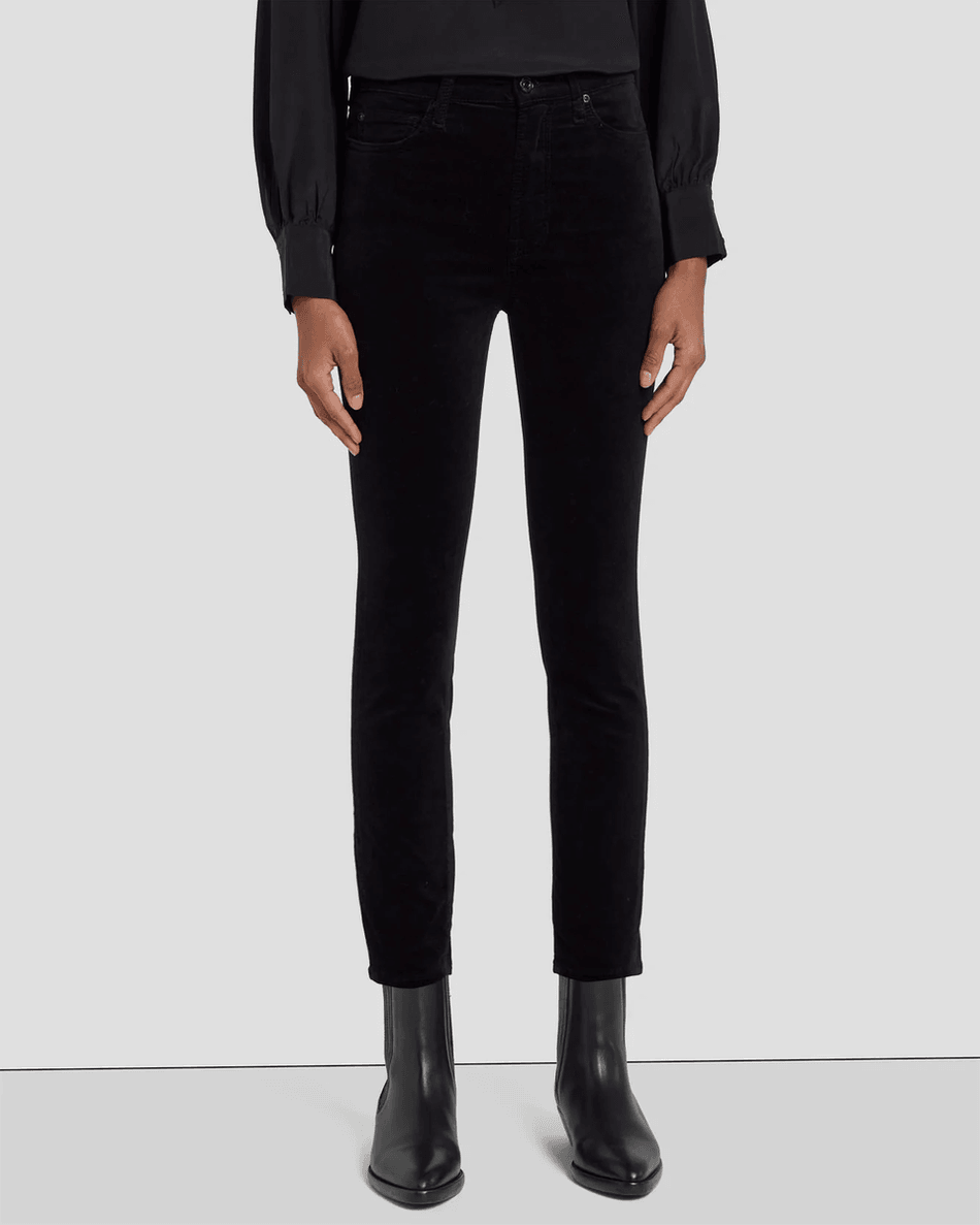 Elevate Your Style with 7 For All Mankind Velvet High Waist Ankle Skinny in Black Black