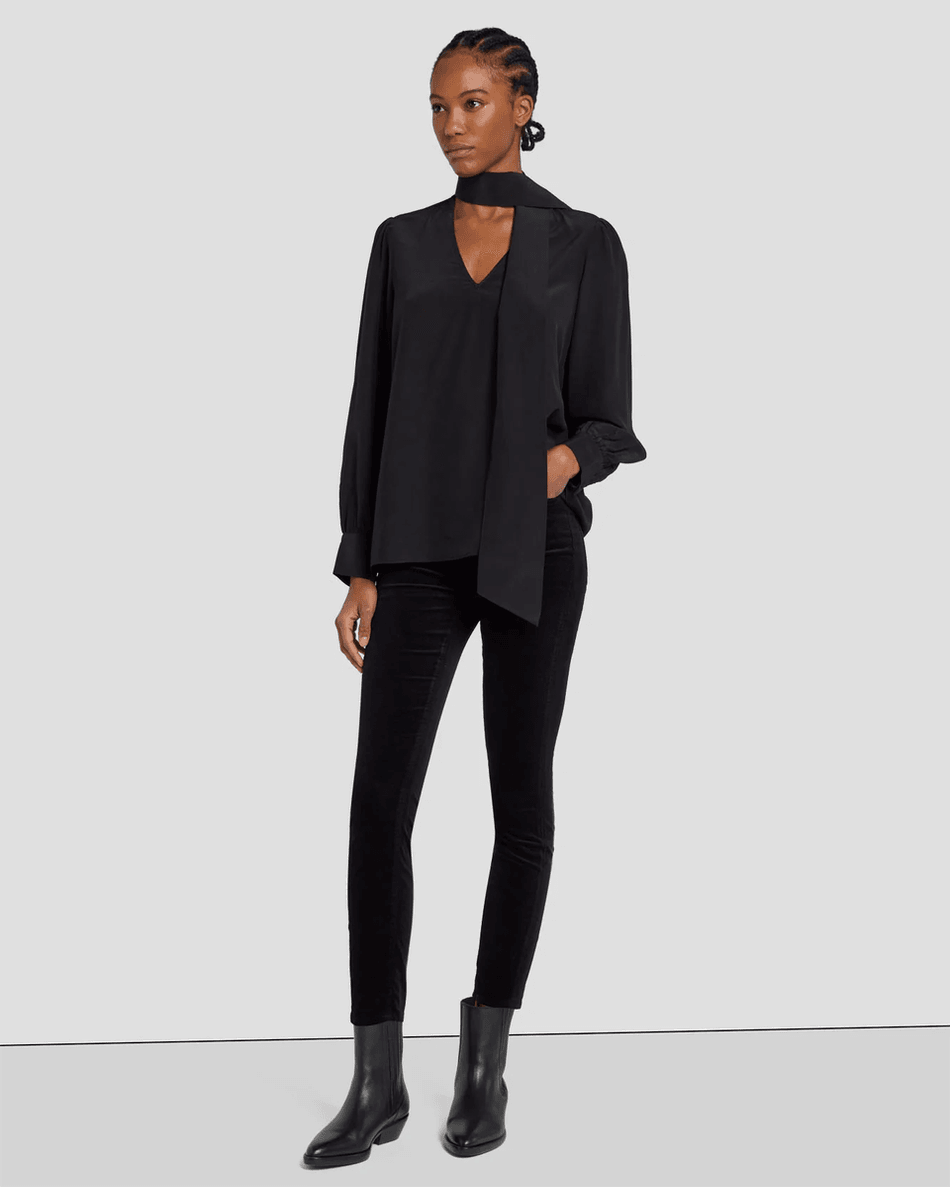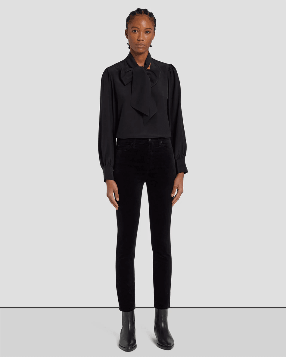 Discover the perfect blend of elegance and comfort with the 7 For All Mankind Velvet High Waist Ankle Skinny in Black Black. This stunning piece is designed to enhance your silhouette while offering a luxurious feel, making it a must-have addition to your wardrobe.