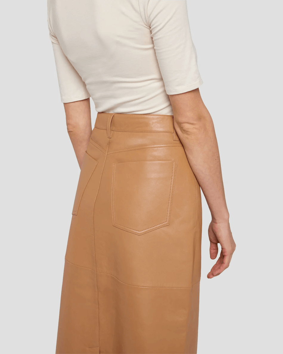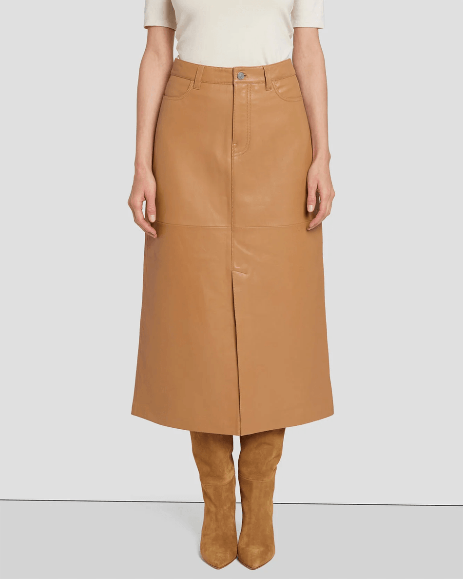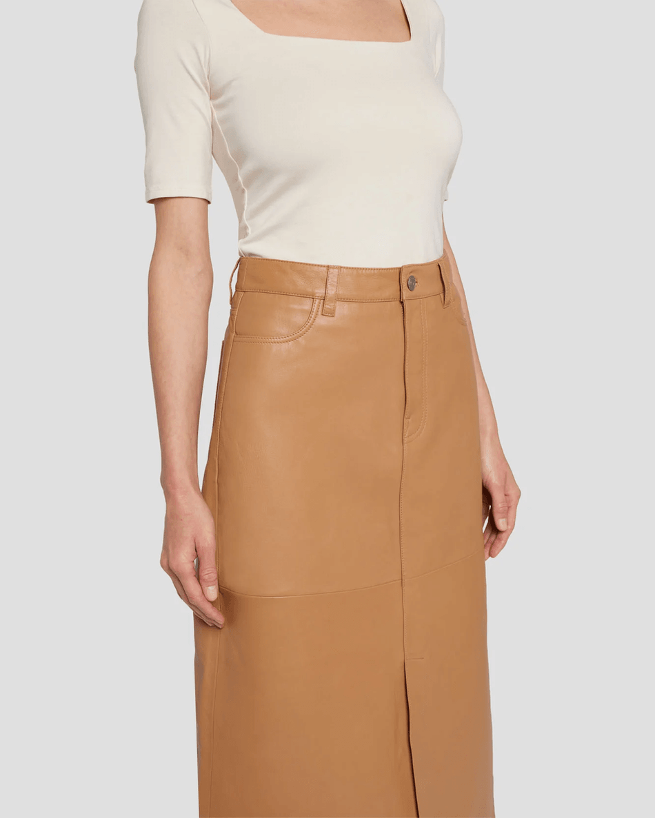 Discover the 7 For All Mankind Leather Midi Skirt in Brown Sugar