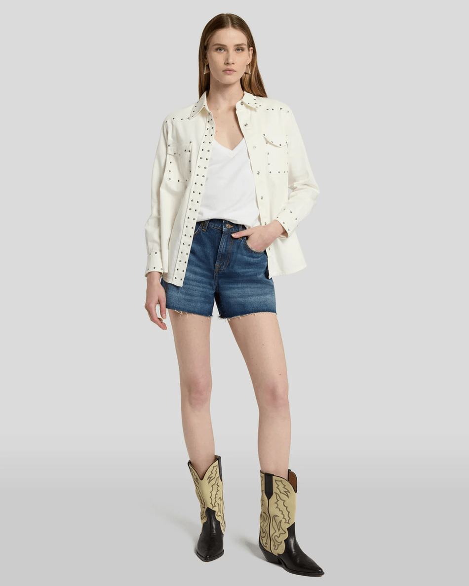 With the 7 For All Mankind Monroe Long Short in Bailey, you can easily transition from day to night. Pair them with your favorite sandals for a laid-back look or dress them up with wedges for an evening out. Don’t miss out on adding this versatile piece to your collection!