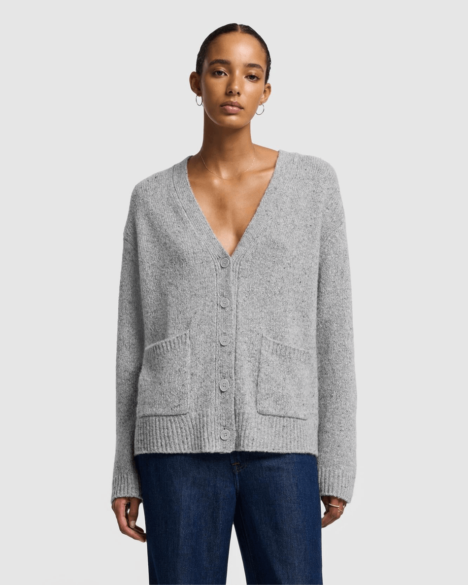 Discover the 7 For All Mankind Cashmere Boyfriend Cardigan in Quiet Grey