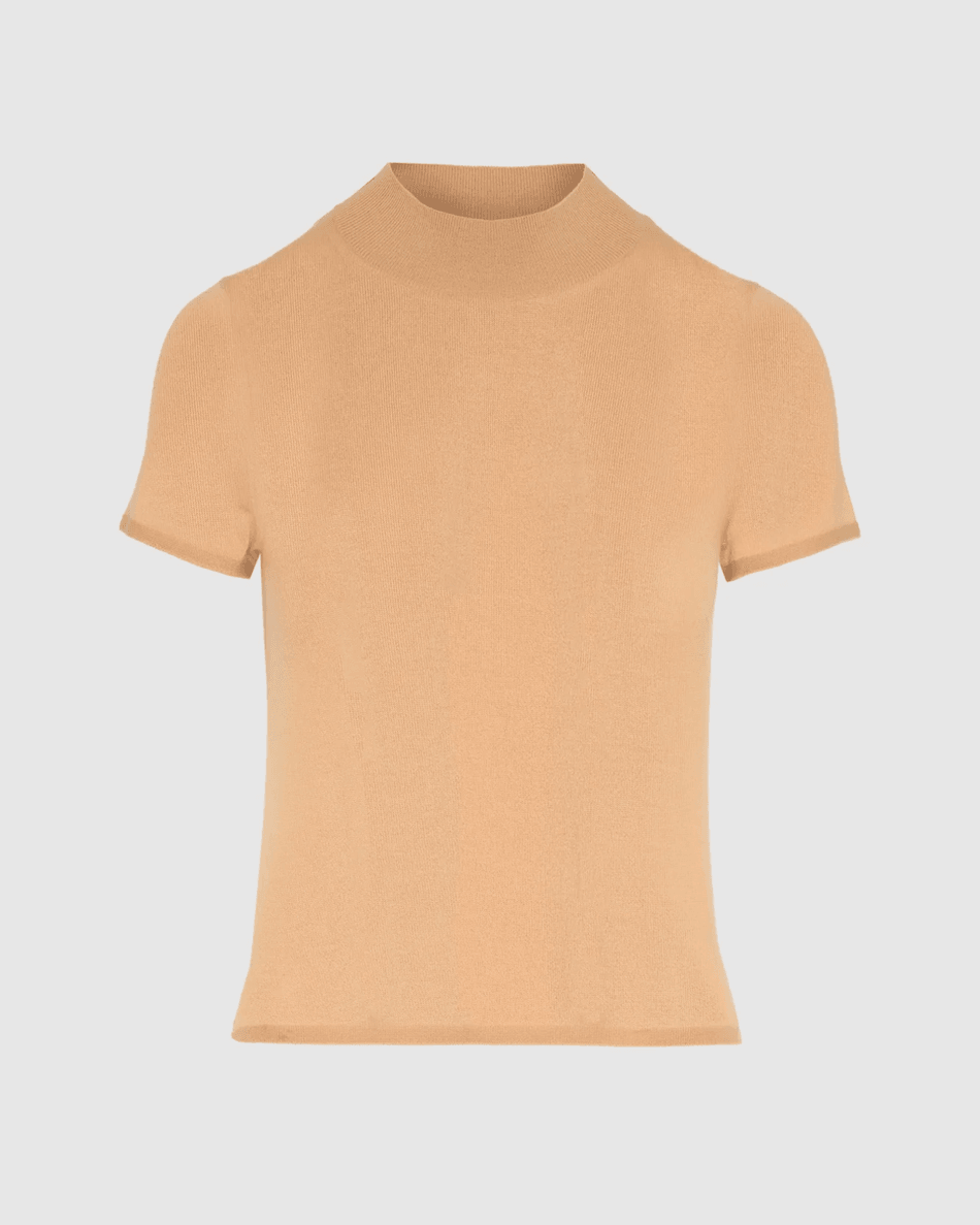 Discover the 7 For All Mankind Cashmere Mock Neck Short Sleeve Sweater