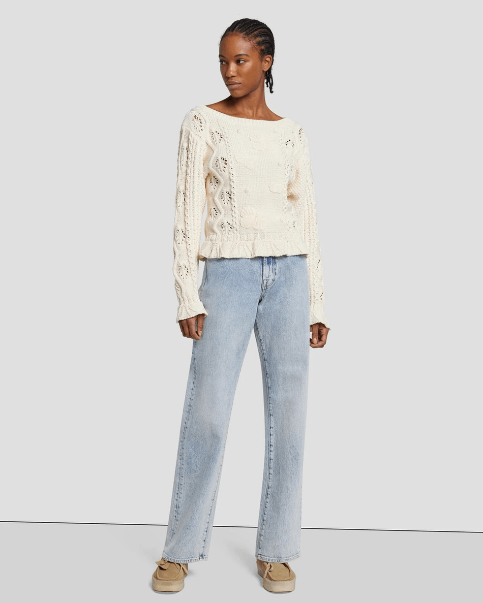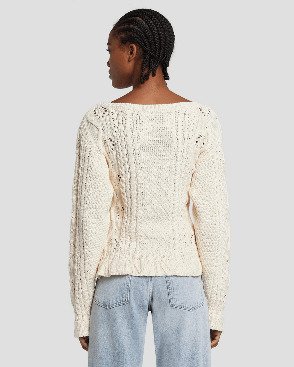 Discover the 7 For All Mankind Floral Cable Knit Sweater in Cream