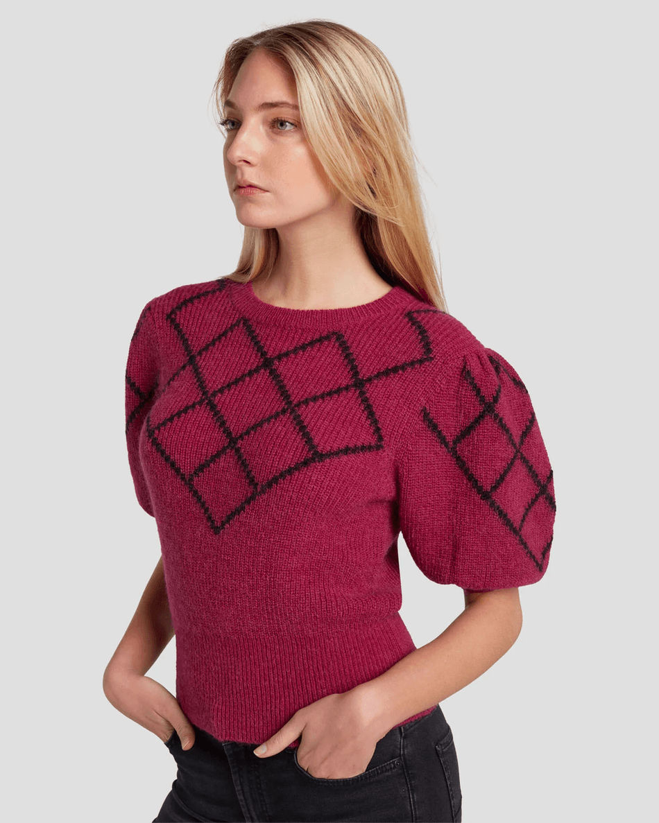 Don't miss out on adding the 7 For All Mankind Puff Diamond Sweater in Raspberry to your collection. Shop now and experience the perfect blend of comfort and chic style!