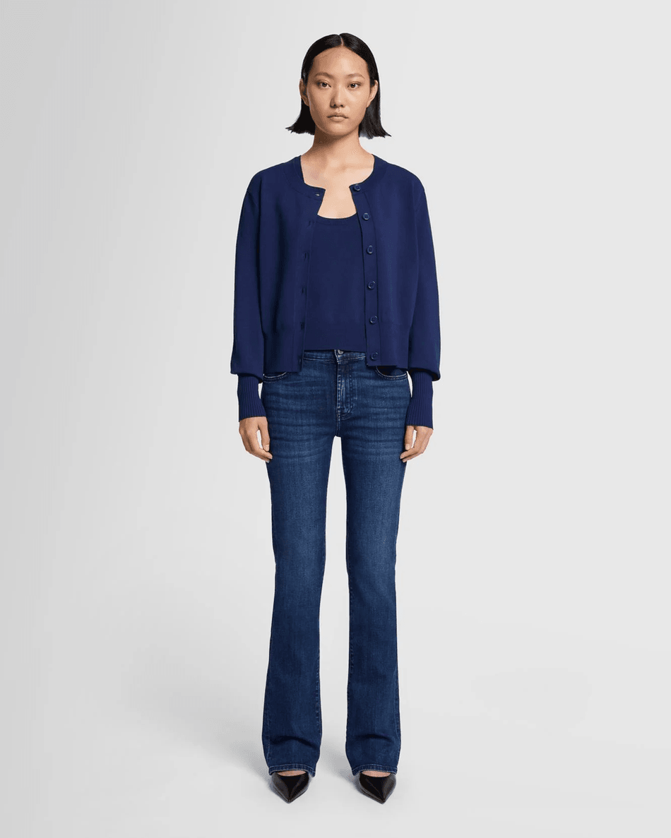 Elevate your wardrobe with the 7 For All Mankind Ribbed Scoop Neck Top in Inkwell. This stylish piece combines comfort and sophistication, making it a must-have for any fashion-forward individual. With its slightly cropped fit and smooth, stretchy fabric, this top is perfect for any occasion.