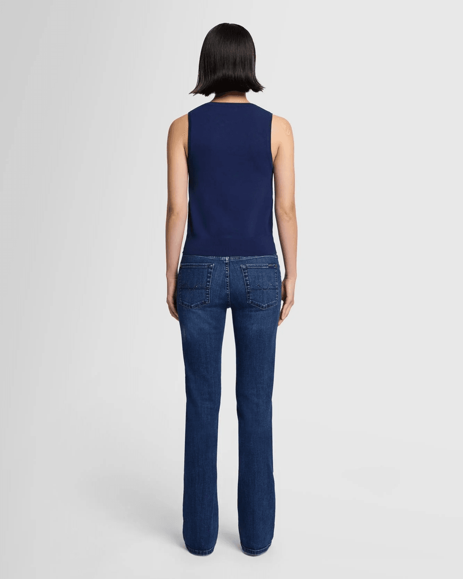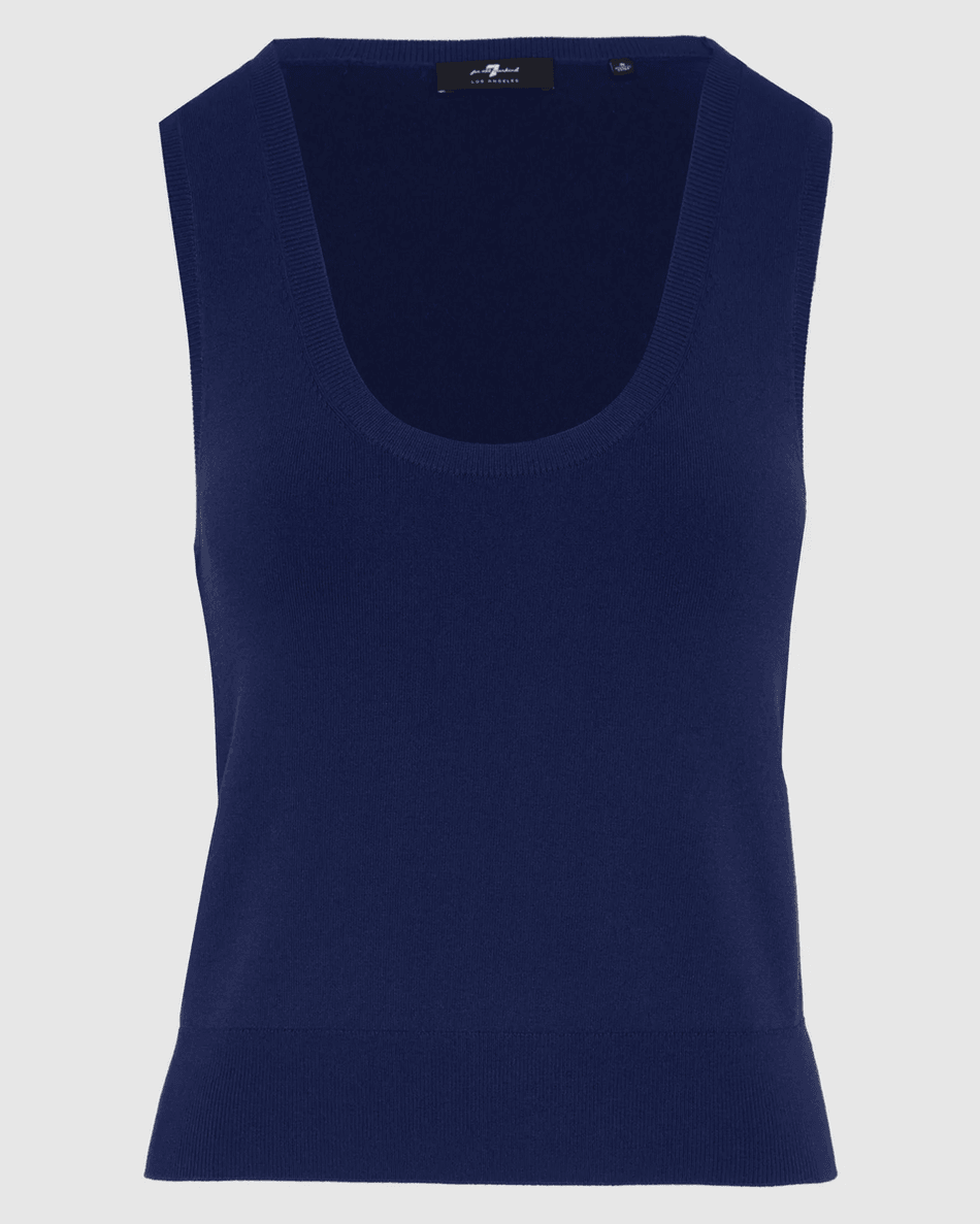 The 7 For All Mankind Ribbed Scoop Neck Top in Inkwell is designed to offer both style and functionality. The navy shade exudes elegance, while the ribbed trim details enhance its visual appeal. Crafted from smooth fabric, this top feels luxurious against your skin and offers plenty of stretch for all-day wear.