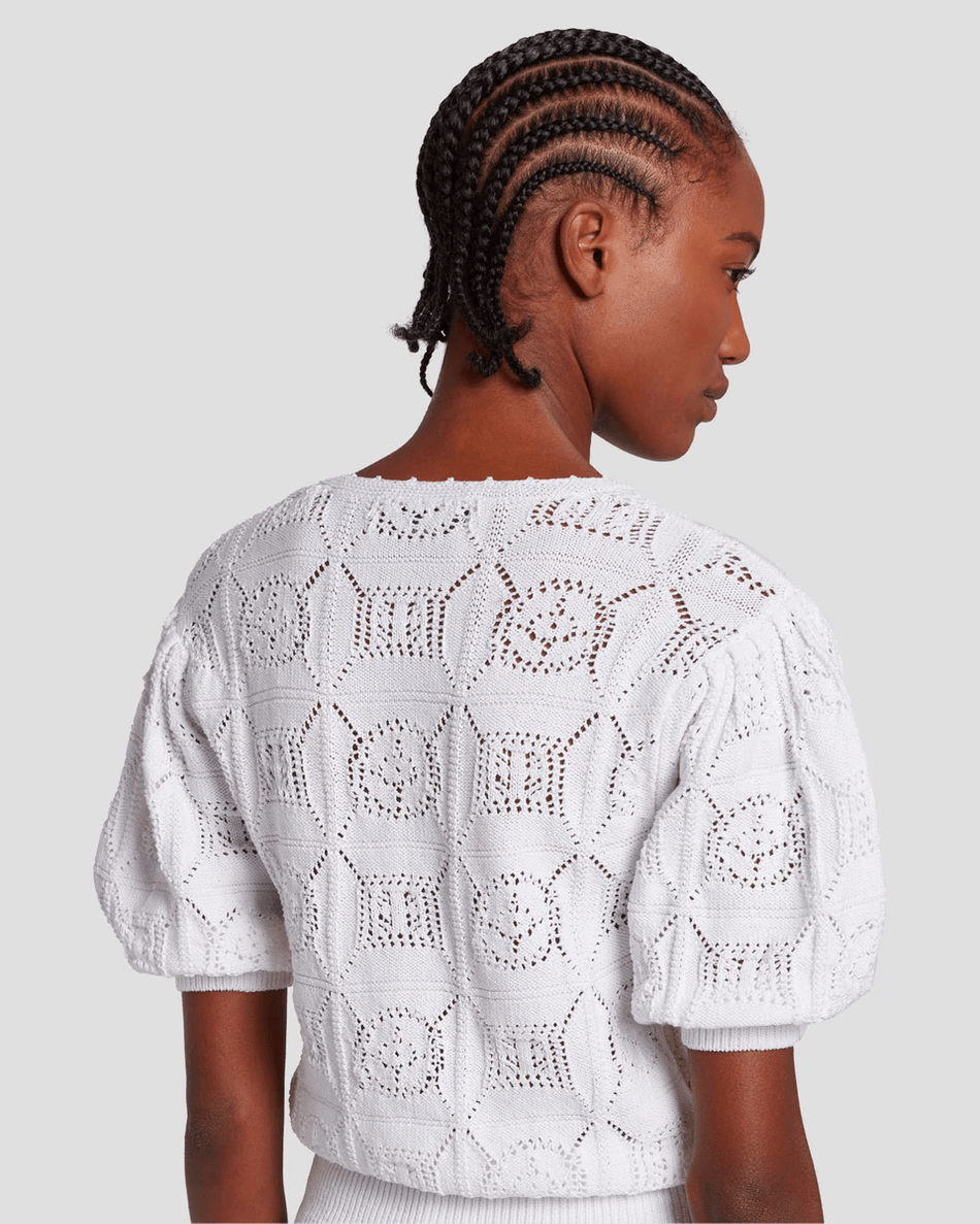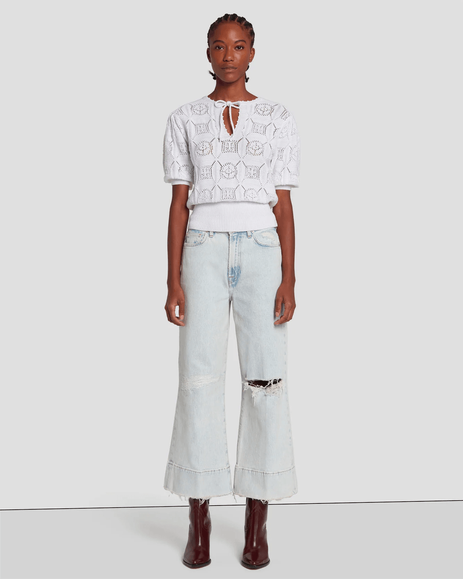 Discover the 7 For All Mankind Short Sleeve Crochet Sweater in Bright White