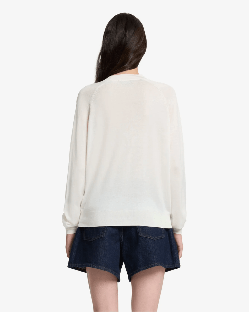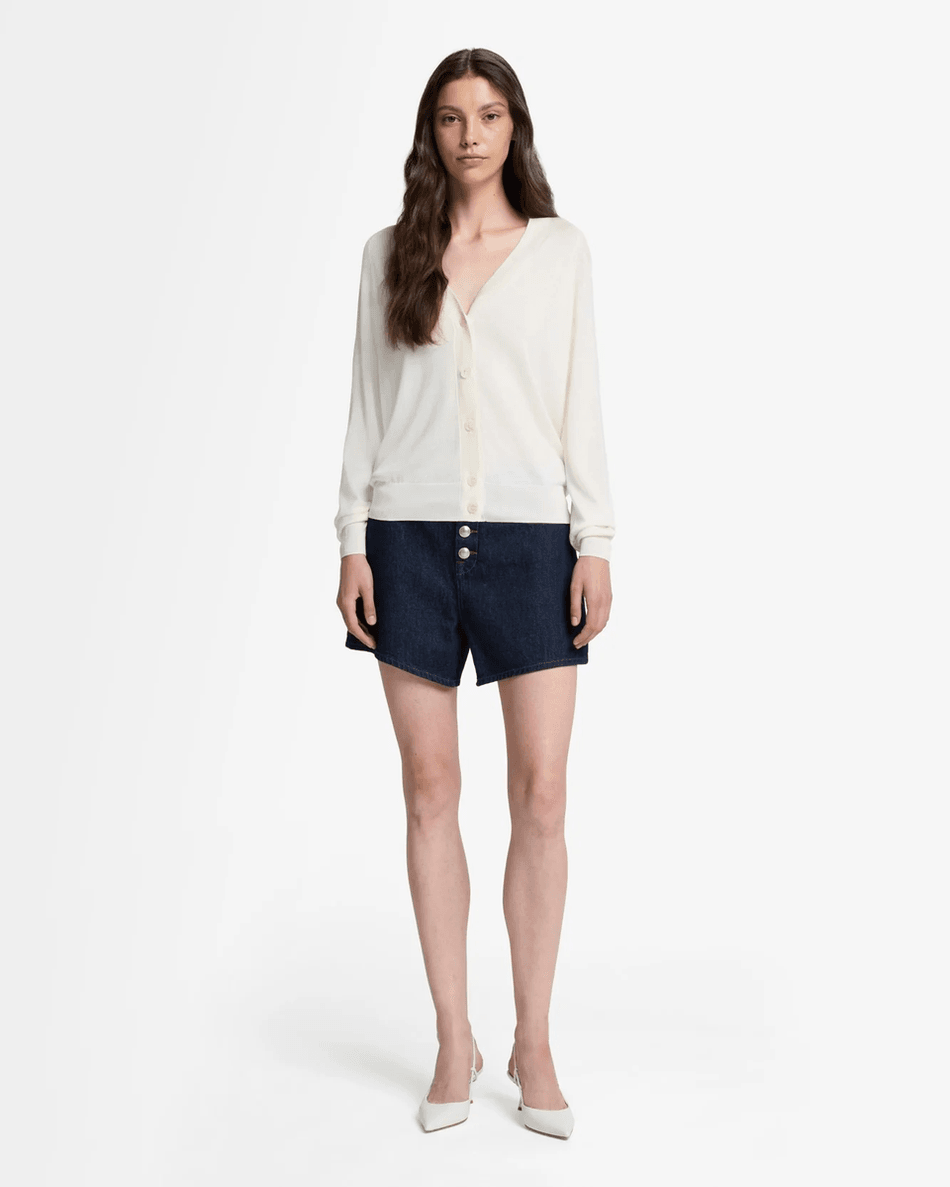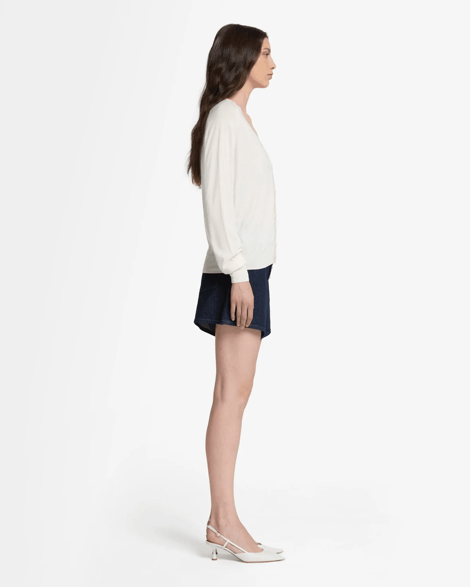 7 For All Mankind Silk Blend V-Neck Cardigan in Ivory Ivory