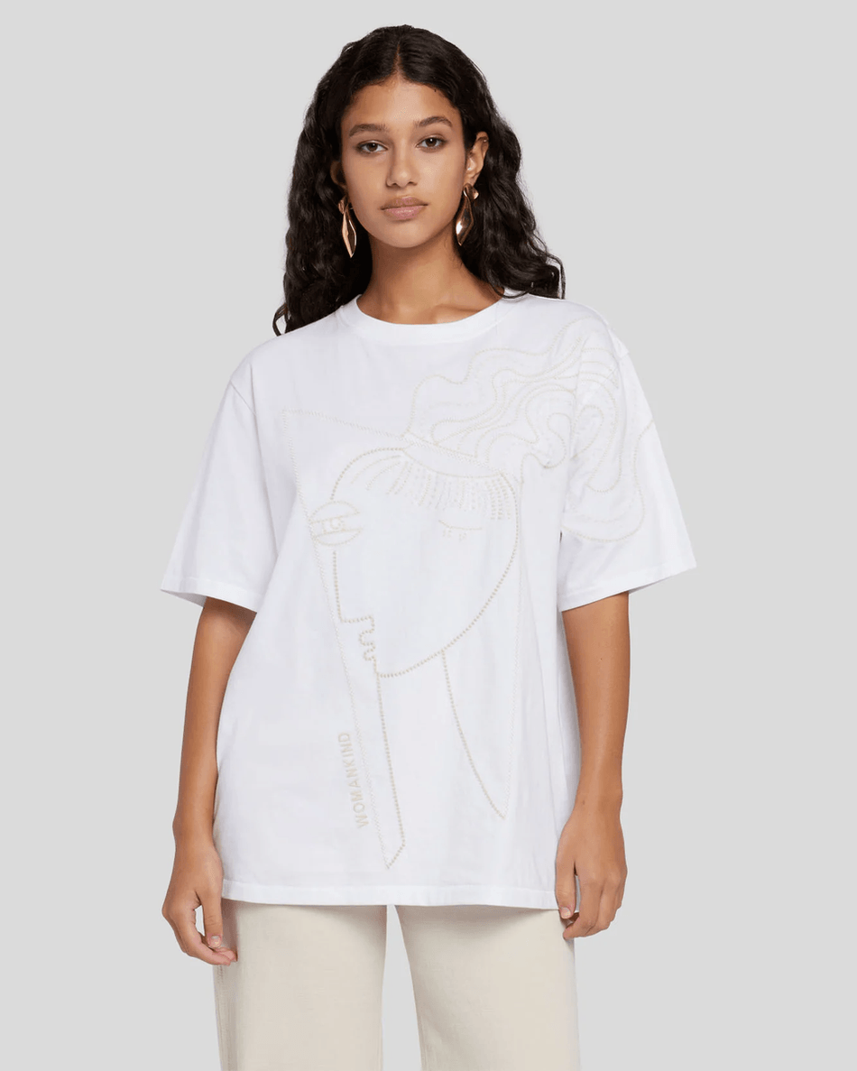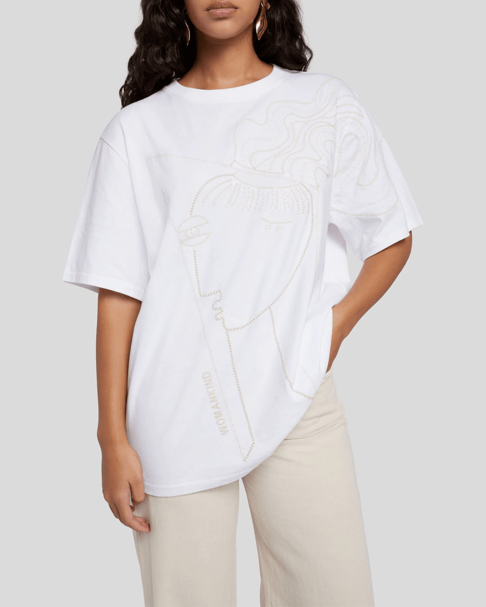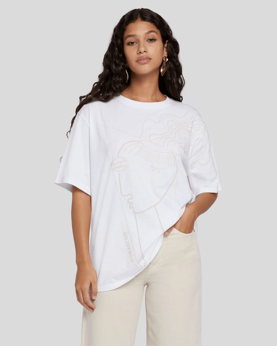 Discover the 7 For All Mankind Alexandra Nechita Embroidered Tee in Off White