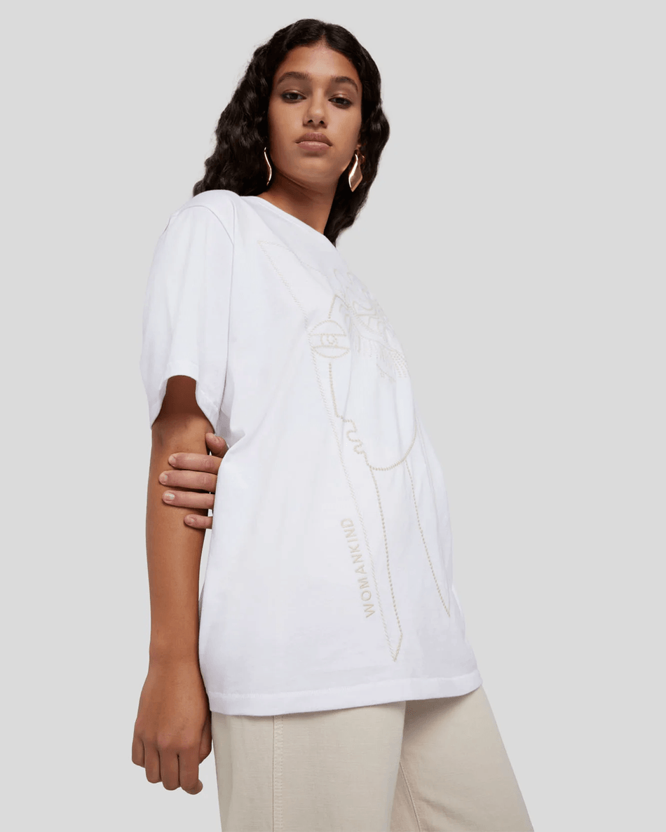 The 7 For All Mankind Alexandra Nechita Embroidered Tee in Off White is more than just a t-shirt; it's a statement piece that celebrates women everywhere. The intricate embroidery adds a touch of elegance, making it a standout option for any occasion. Crafted from high-quality materials, this tee ensures both comfort and durability.