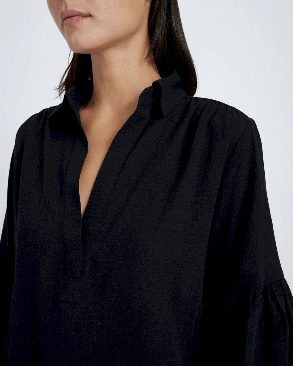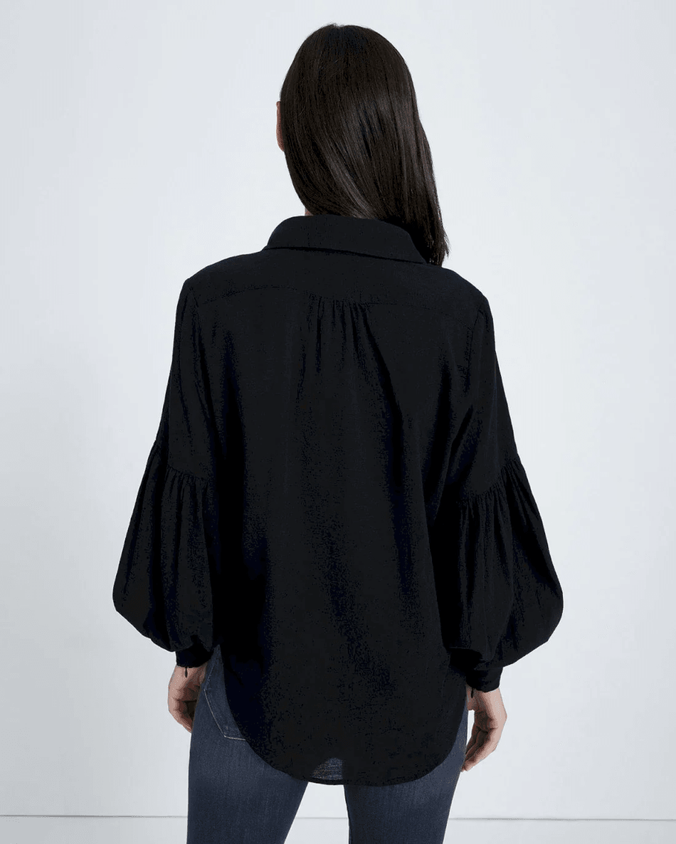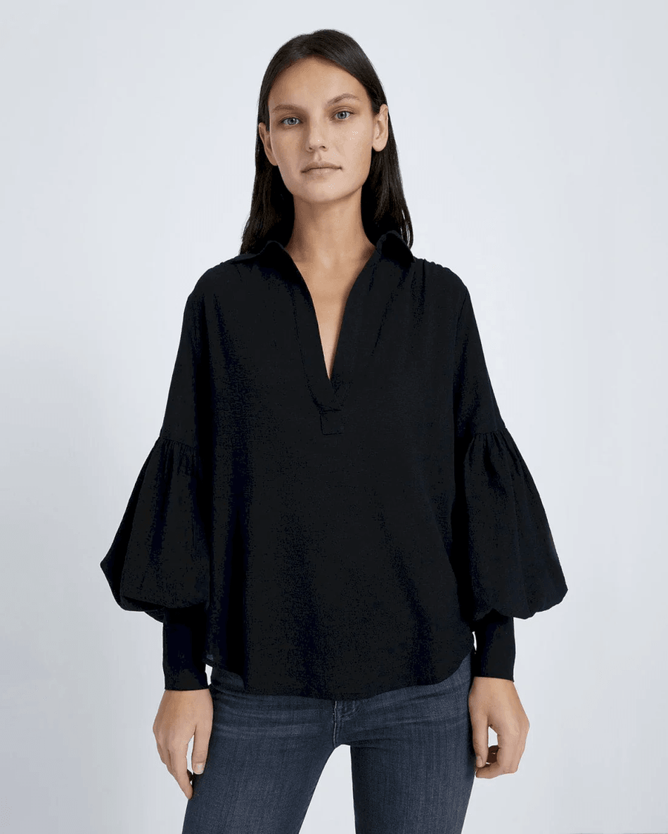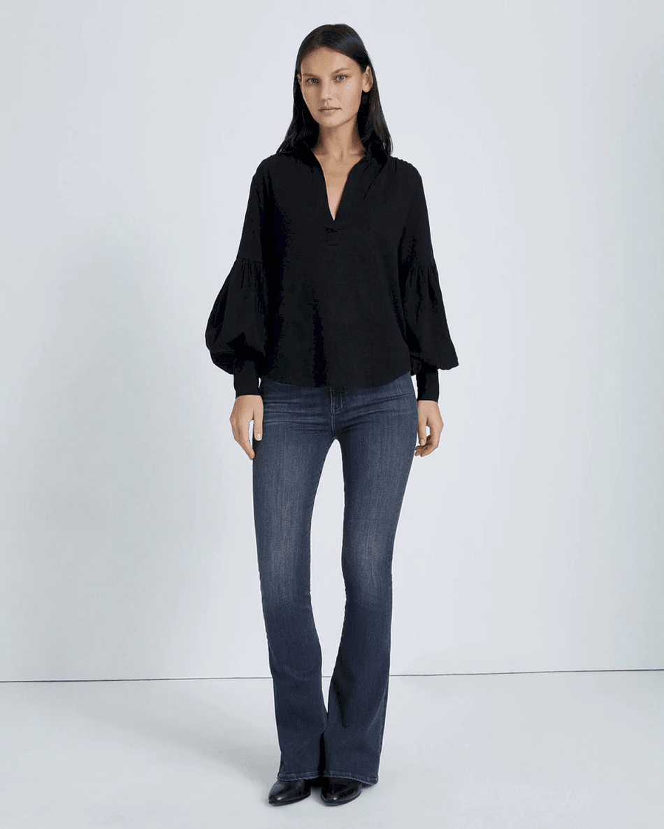 Discover the Elegance of the 7 For All Mankind Balloon Sleeve Crepe Top in Jet Black