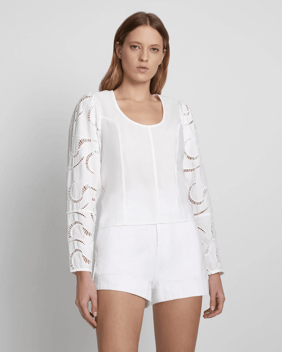 Discover the 7 For All Mankind Balloon Sleeve Eyelet Top in Antique White