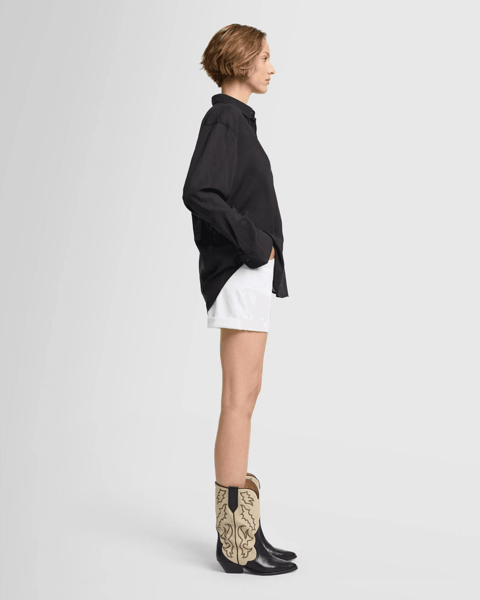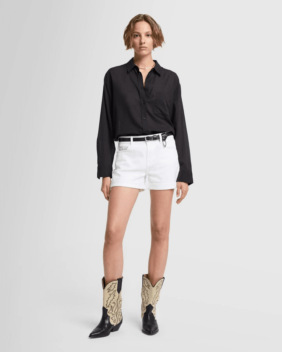 Elevate your wardrobe with the 7 For All Mankind Classic Button Up Shirt in Black Black. This chic, feminine twist on the traditional button-up is both stylish and effortless, making it an essential piece for any fashion-savvy woman.