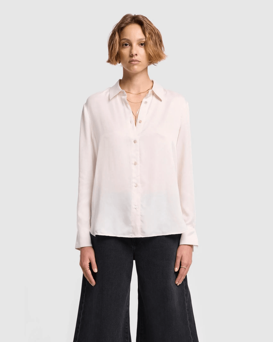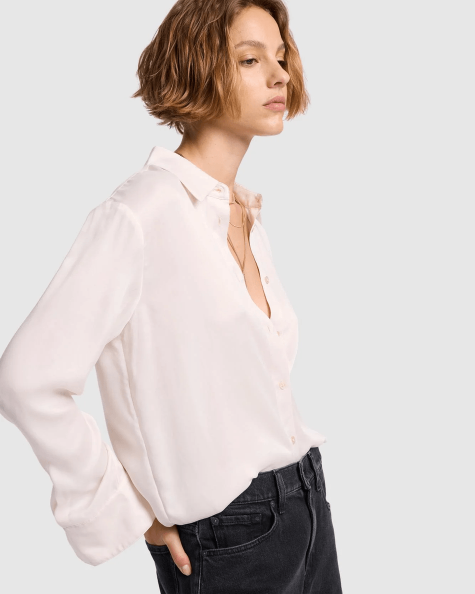 Discover the 7 For All Mankind Cupro Shirt in Milk Milk