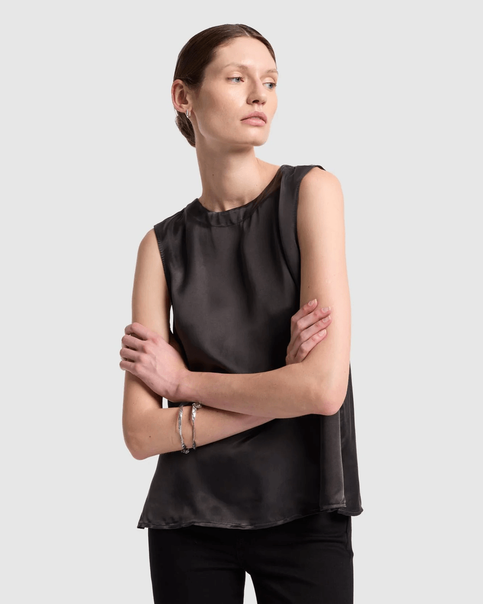 7 For All Mankind Cupro Sleeveless Top in Black Black