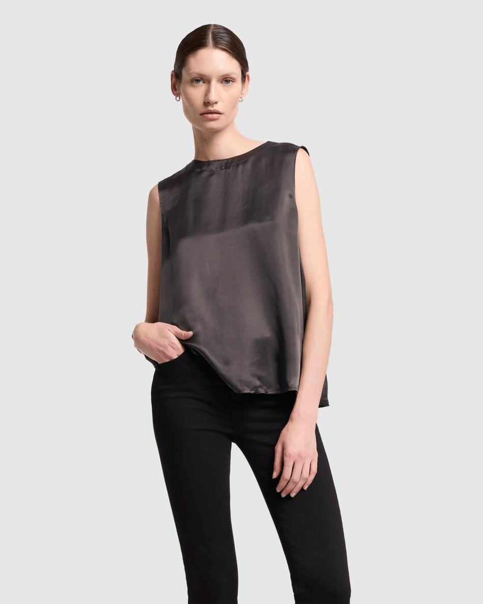 Elevate Your Wardrobe with the 7 For All Mankind Cupro Sleeveless Top in Black