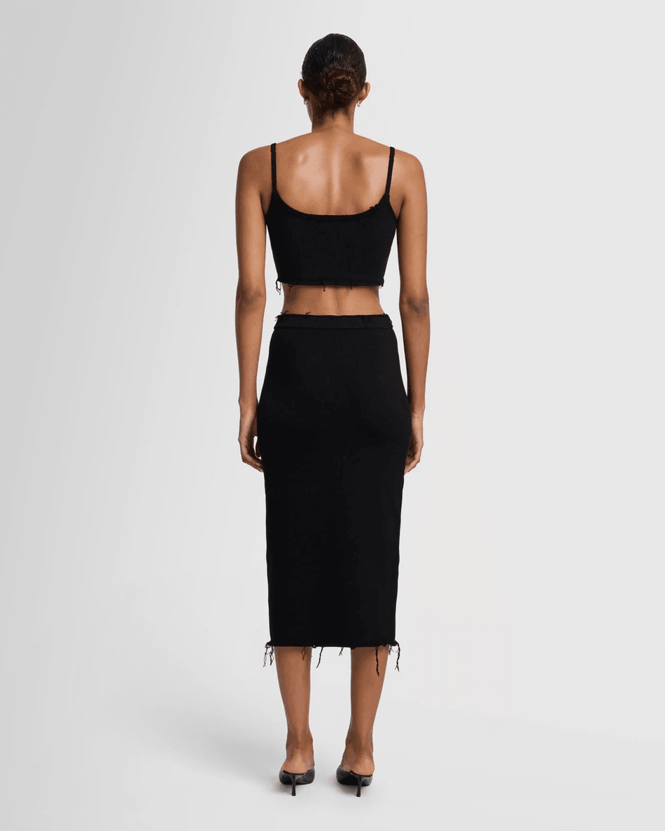7 For All Mankind Distressed Knit Cropped Tank in Black Black