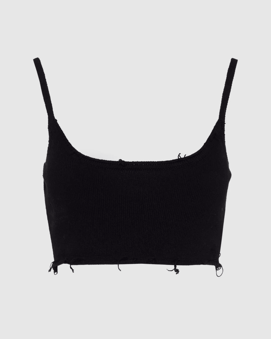 Discover the 7 For All Mankind Distressed Knit Cropped Tank in Black Black