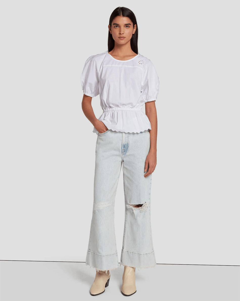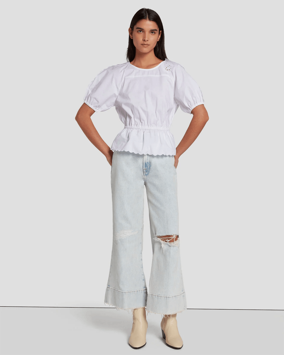 7 For All Mankind Eyelet Top in Bright White Bright White
