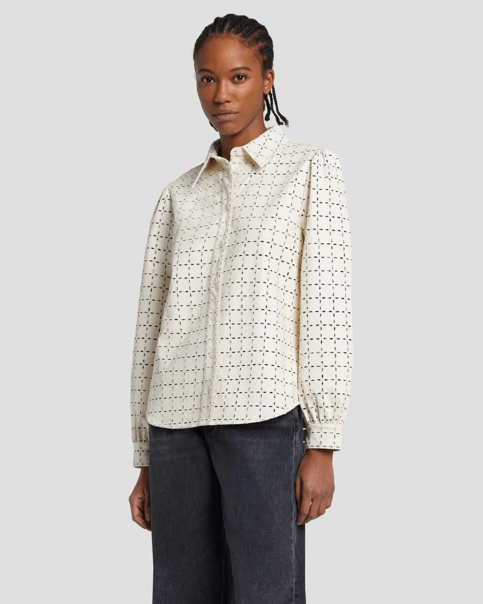 Elevate Your Style with the 7 For All Mankind Faux Leather Eyelet Classic Shirt in Cream