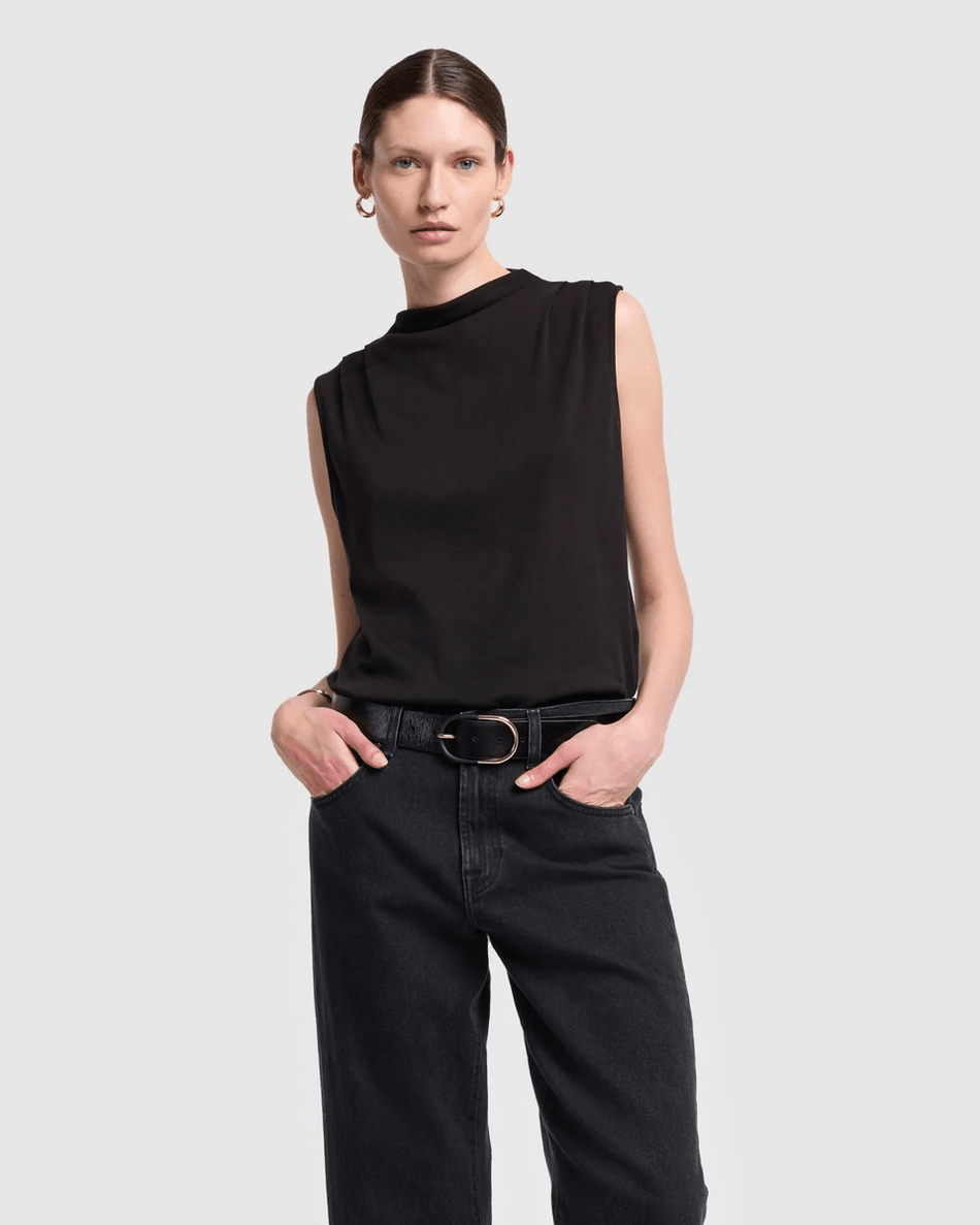 Don't miss out on this essential piece! Order the 7 For All Mankind High Neck Draped Top in Black today and redefine your style with ease.