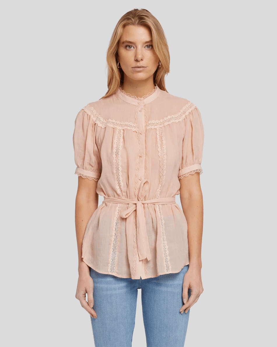 Discover the 7 For All Mankind Lace Trim Prairie Blouse