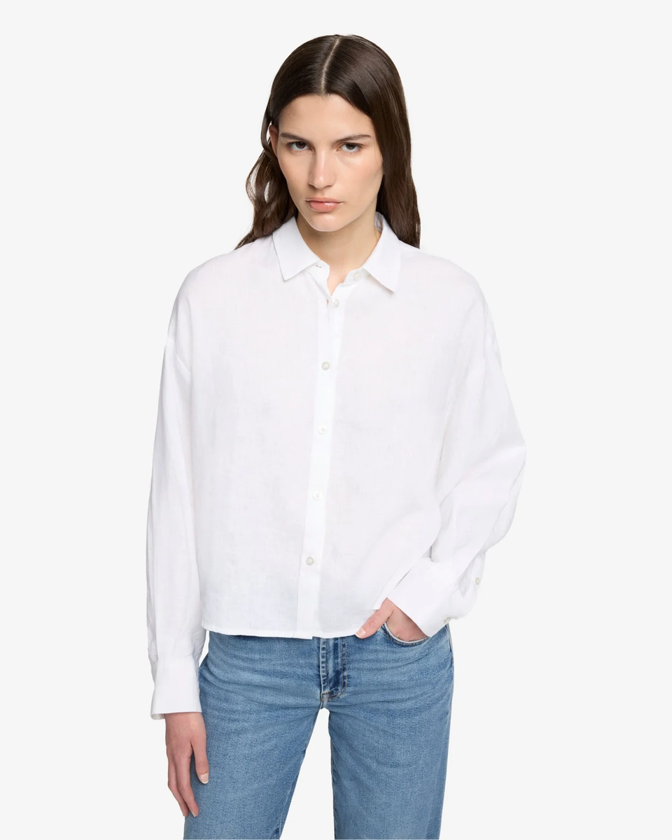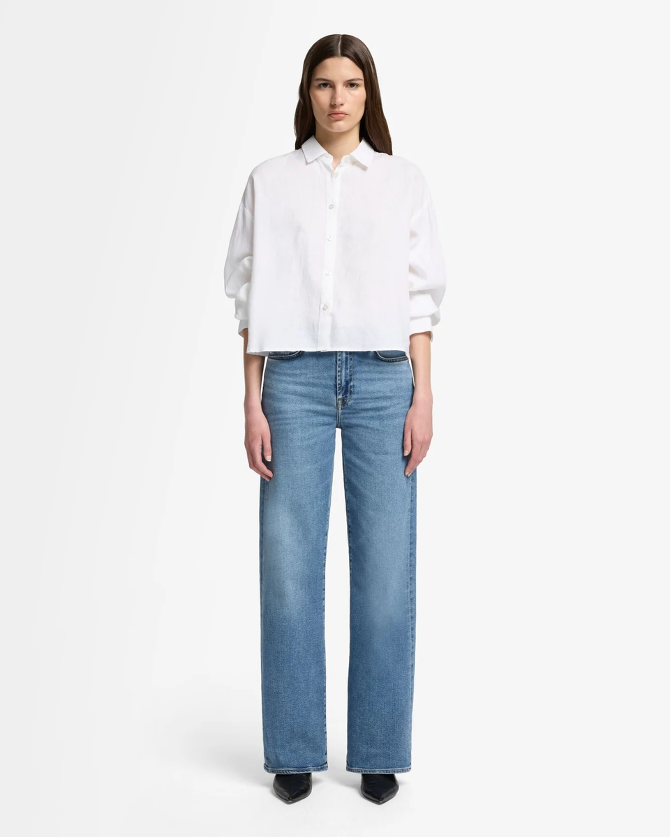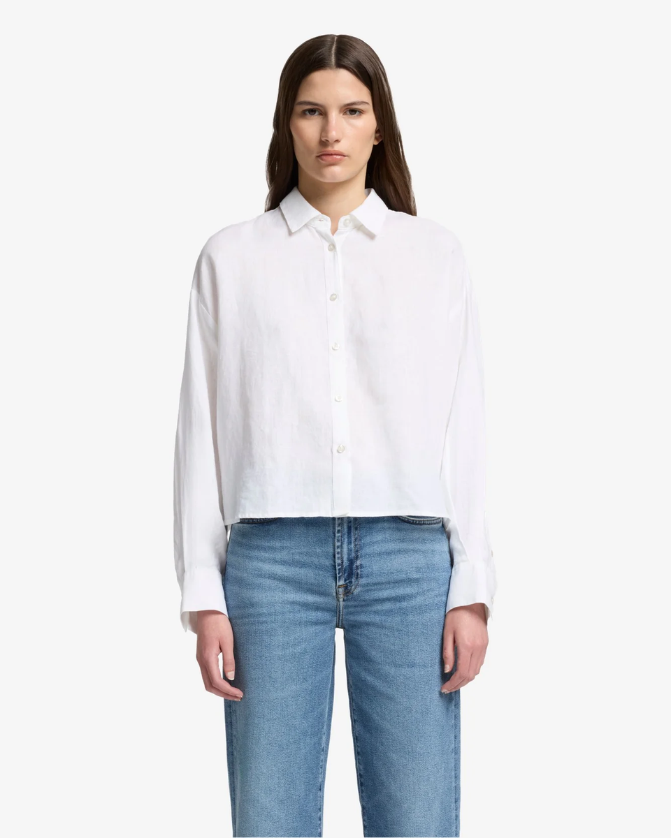 Discover the 7 For All Mankind Linen Cropped Shirt in Optical White
