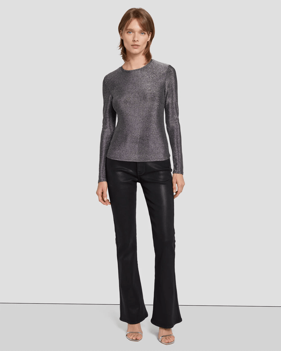 7 For All Mankind Long Sleeve Shimmer Top in Gunmetal